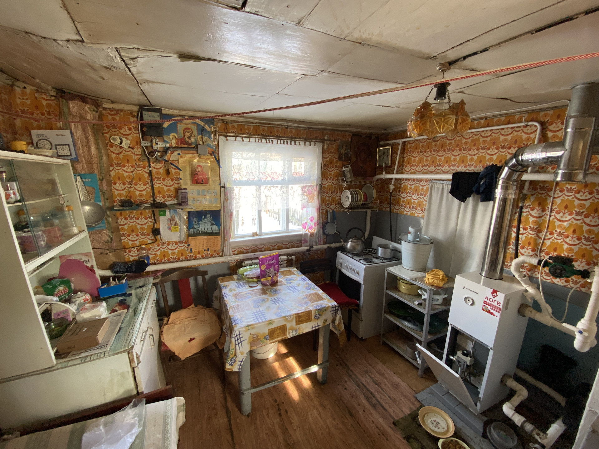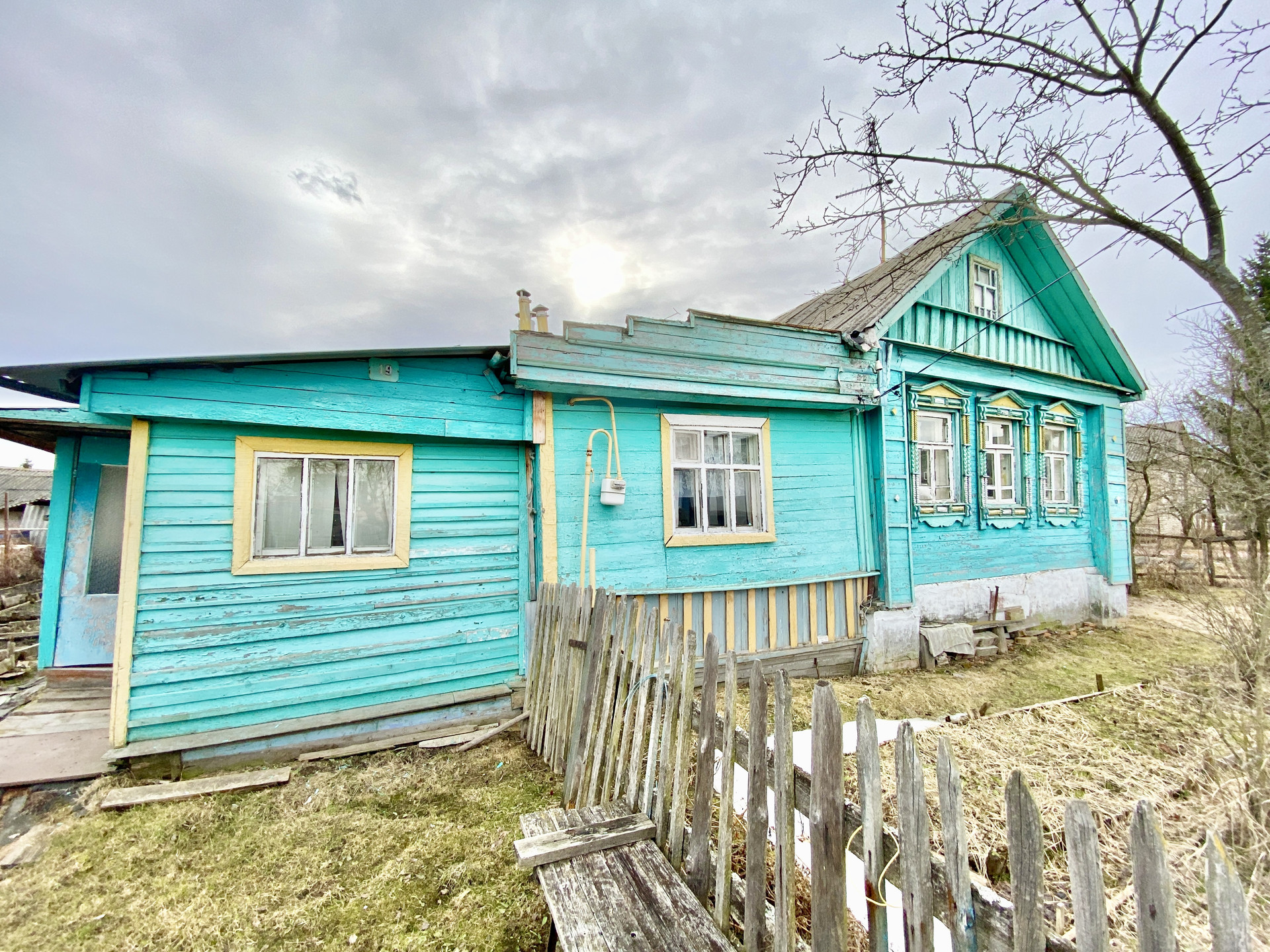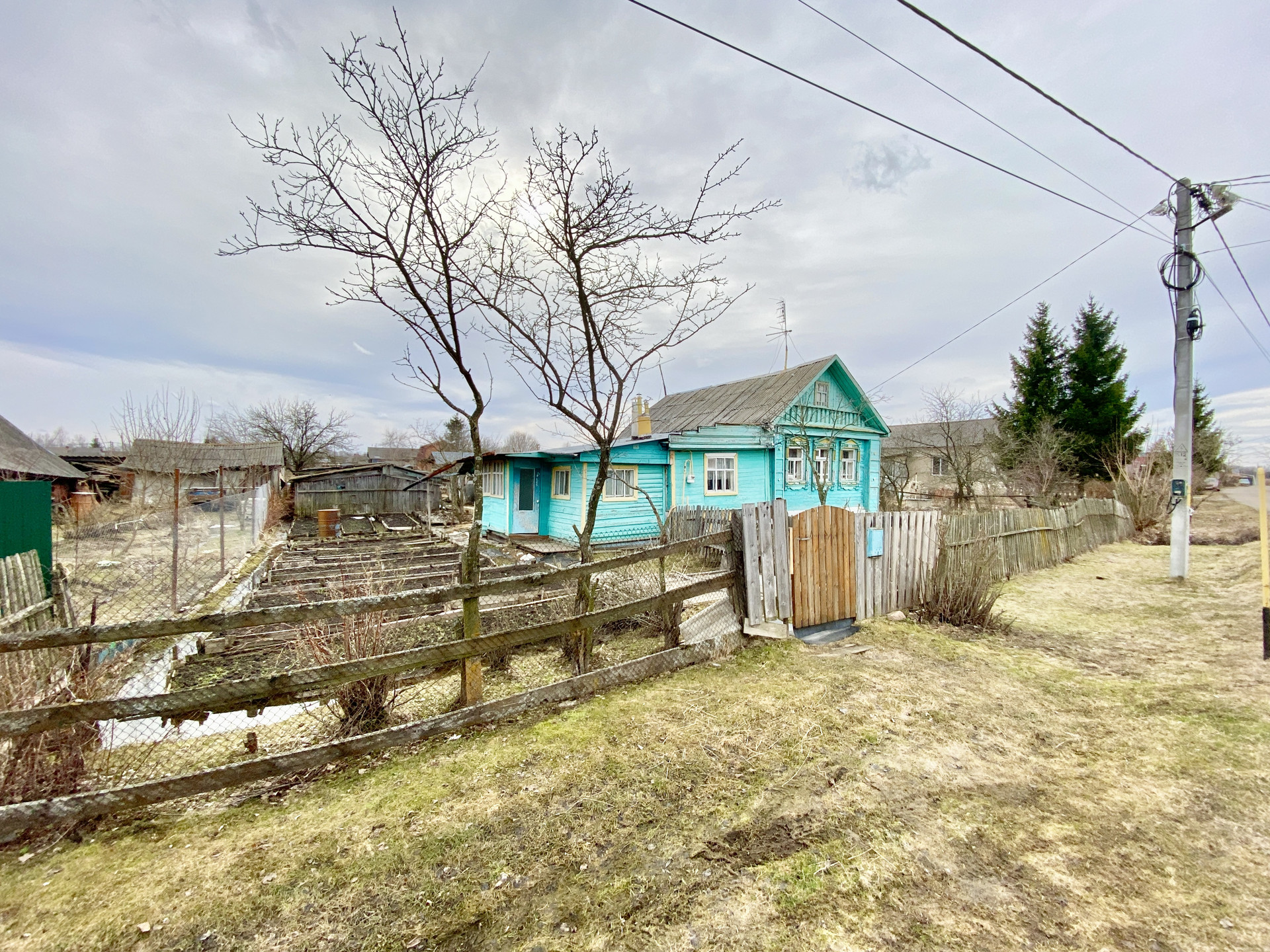 Дом деревянный. Электричество, природный газ и отопление от газового котла, вода - колодец рядом с участком.