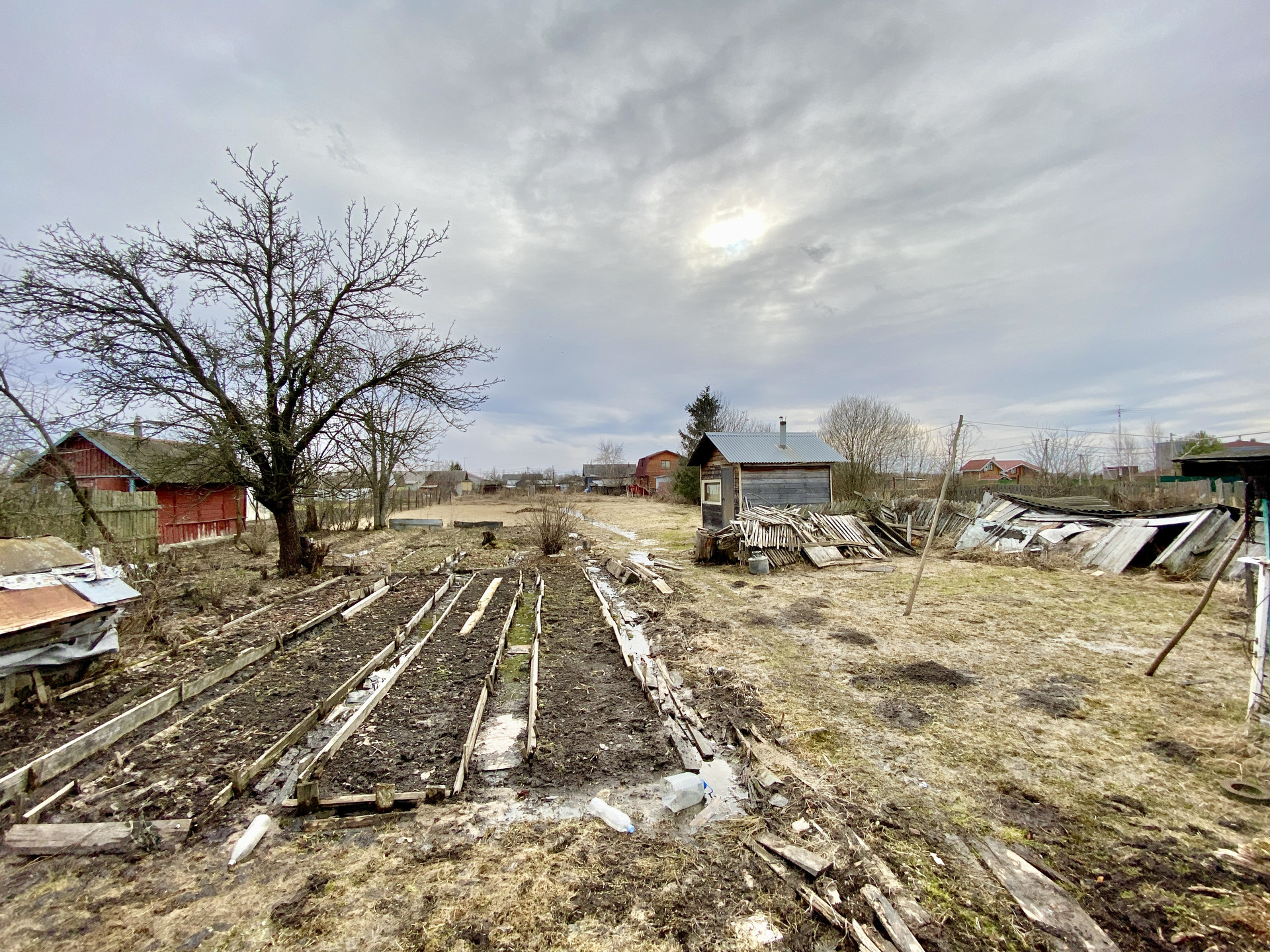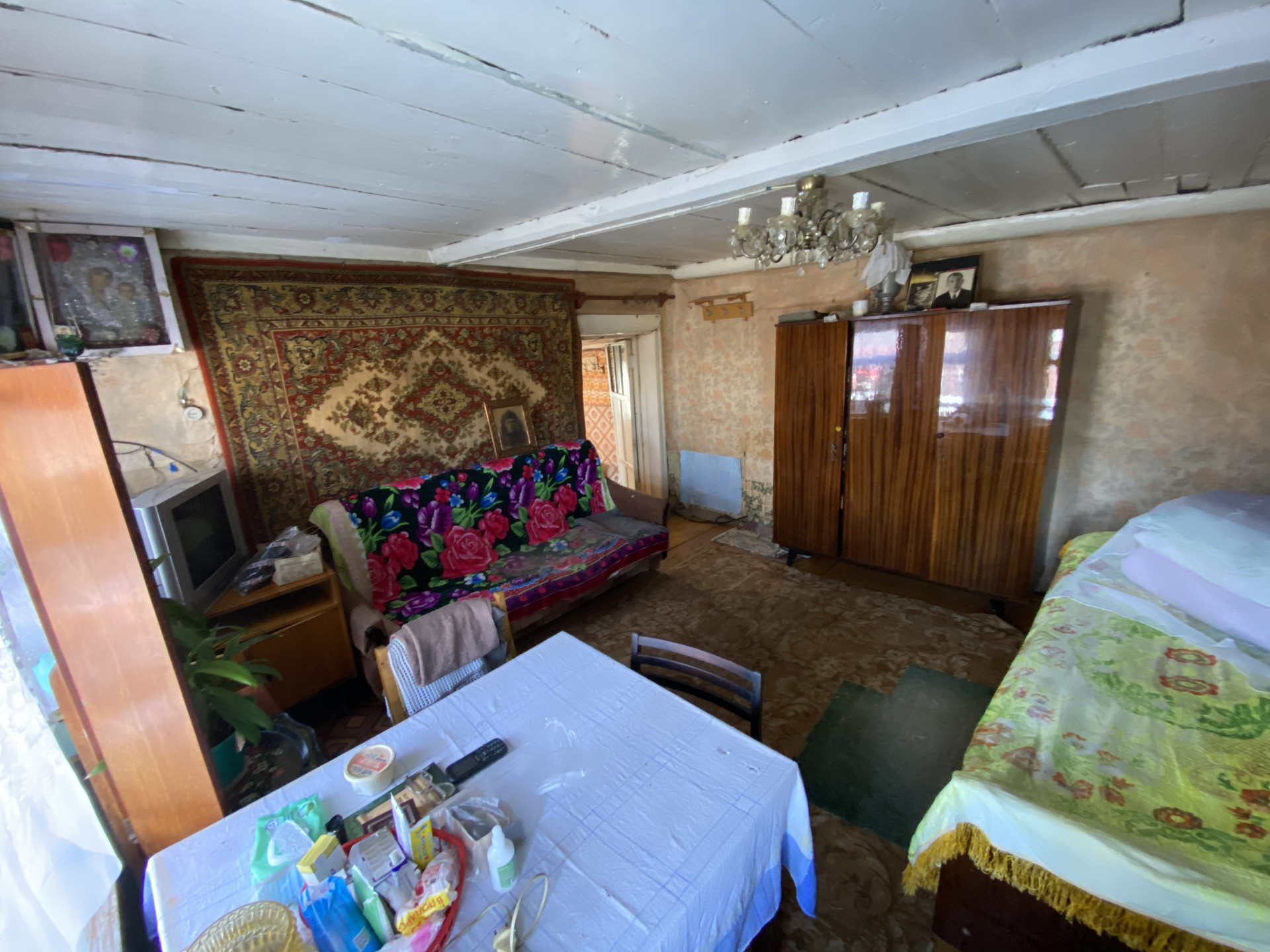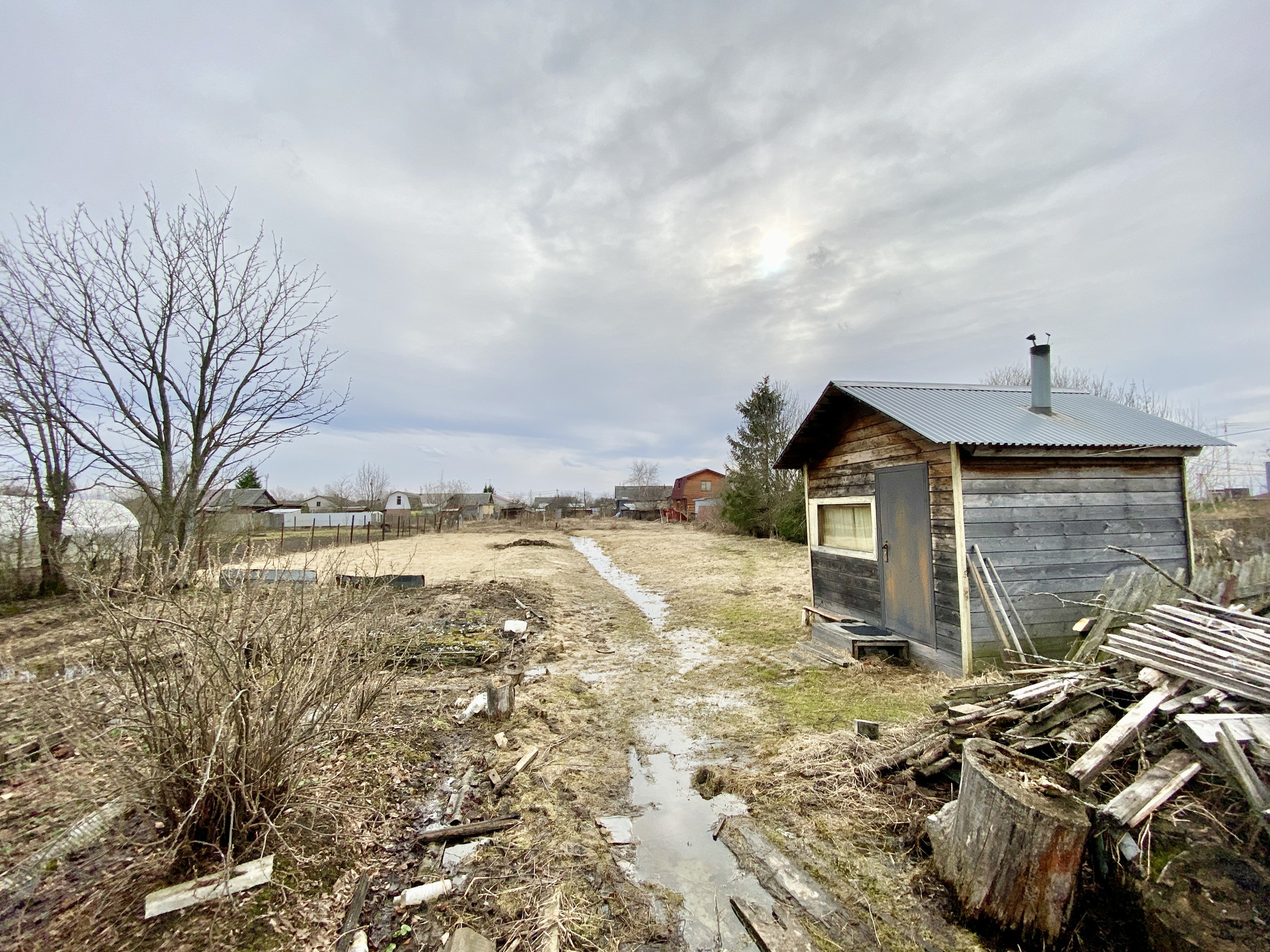 Дом деревянный. Электричество, природный газ и отопление от газового котла, вода - колодец рядом с участком.