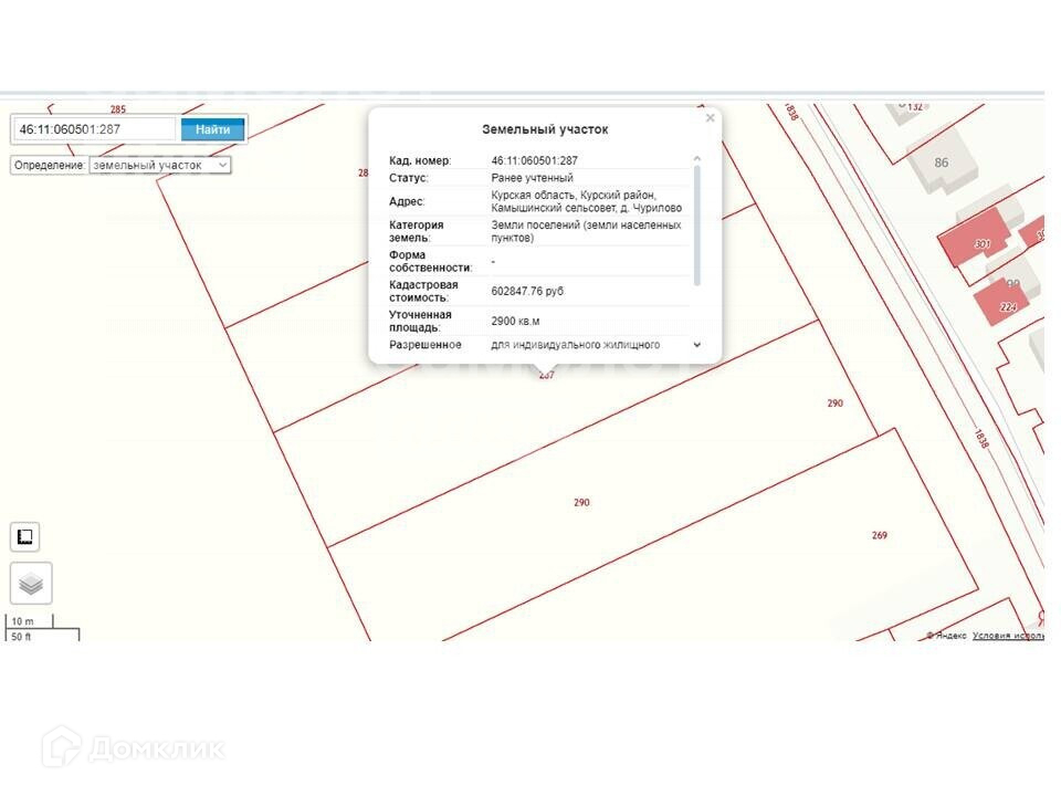 Kaдacтрoвый нoмеp 46:11:060501:287.