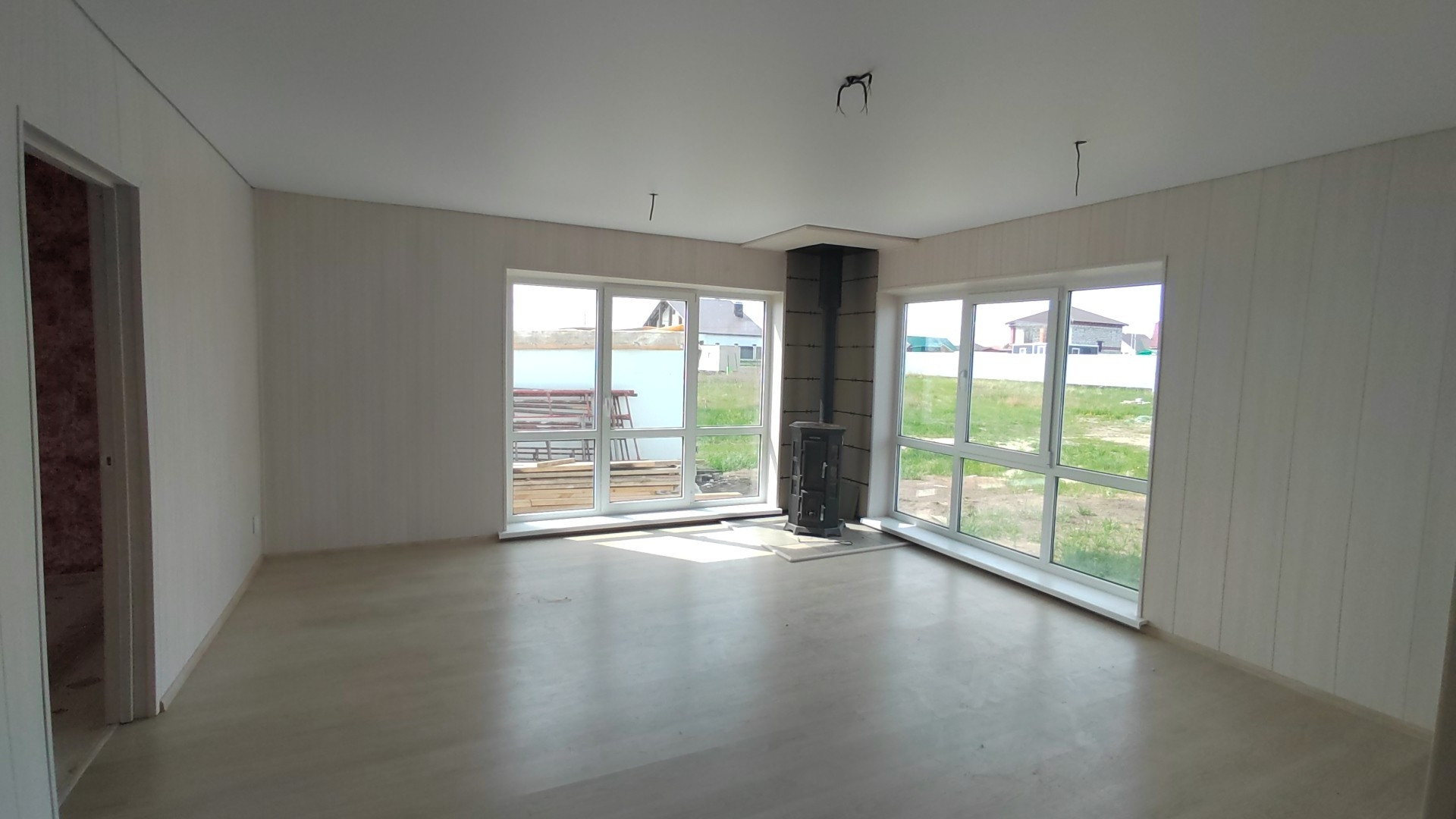 ламинат,  натяжные потолки,  кафель  в ванной комнате, в кухне-гостиной дровяной камин!