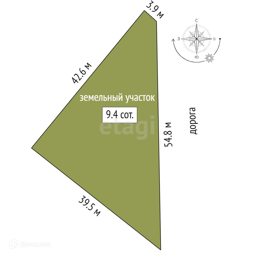 Площадь участка 9.4 сот.