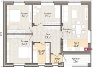 Одноэтажный дом на стадии строительства. Общей площадью 117 кв.м., на участке 7,5 соток. Дом будет сдаваться в предчистовой отделке. |