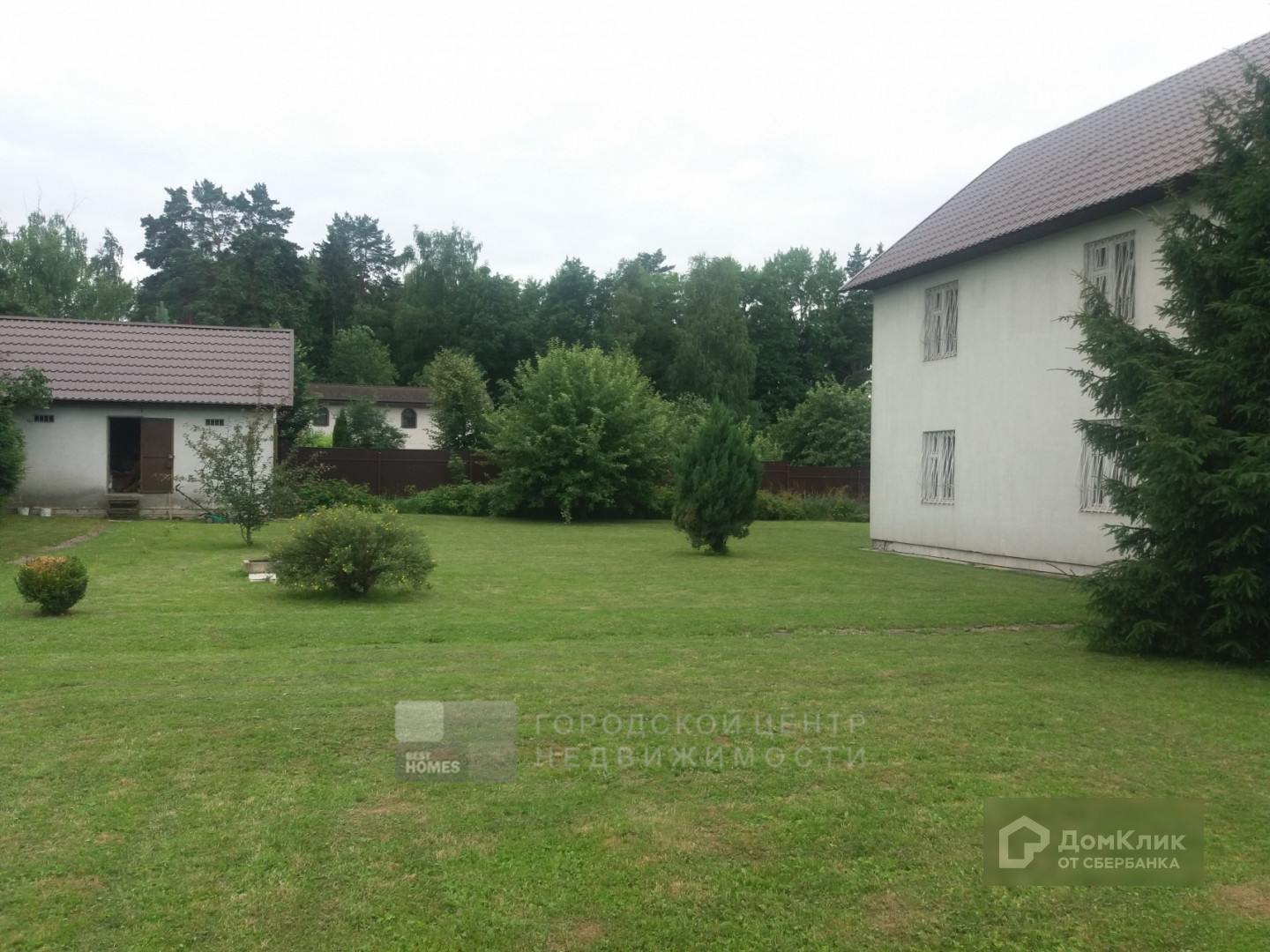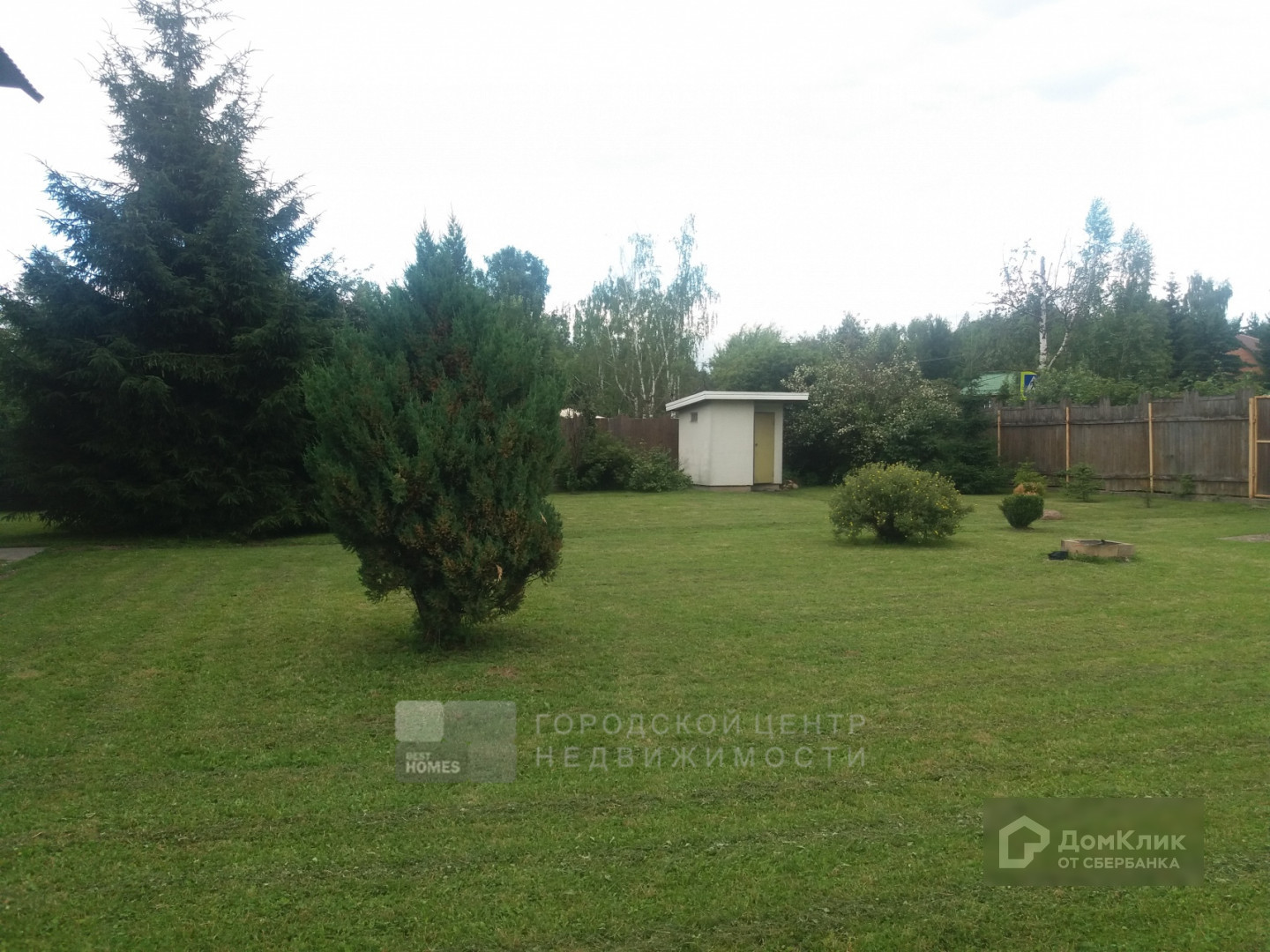 На участке растут плодовые (яблоня, вишня, слива) и хвойные деревья и цветы. Также имеются гараж и летний санузел.