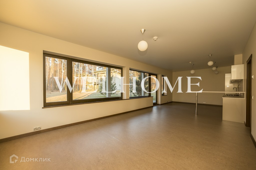 Два этажа с четырьмя спальнями, тремя санузлами, гардеробной и просторной студией с панорамными окнами.