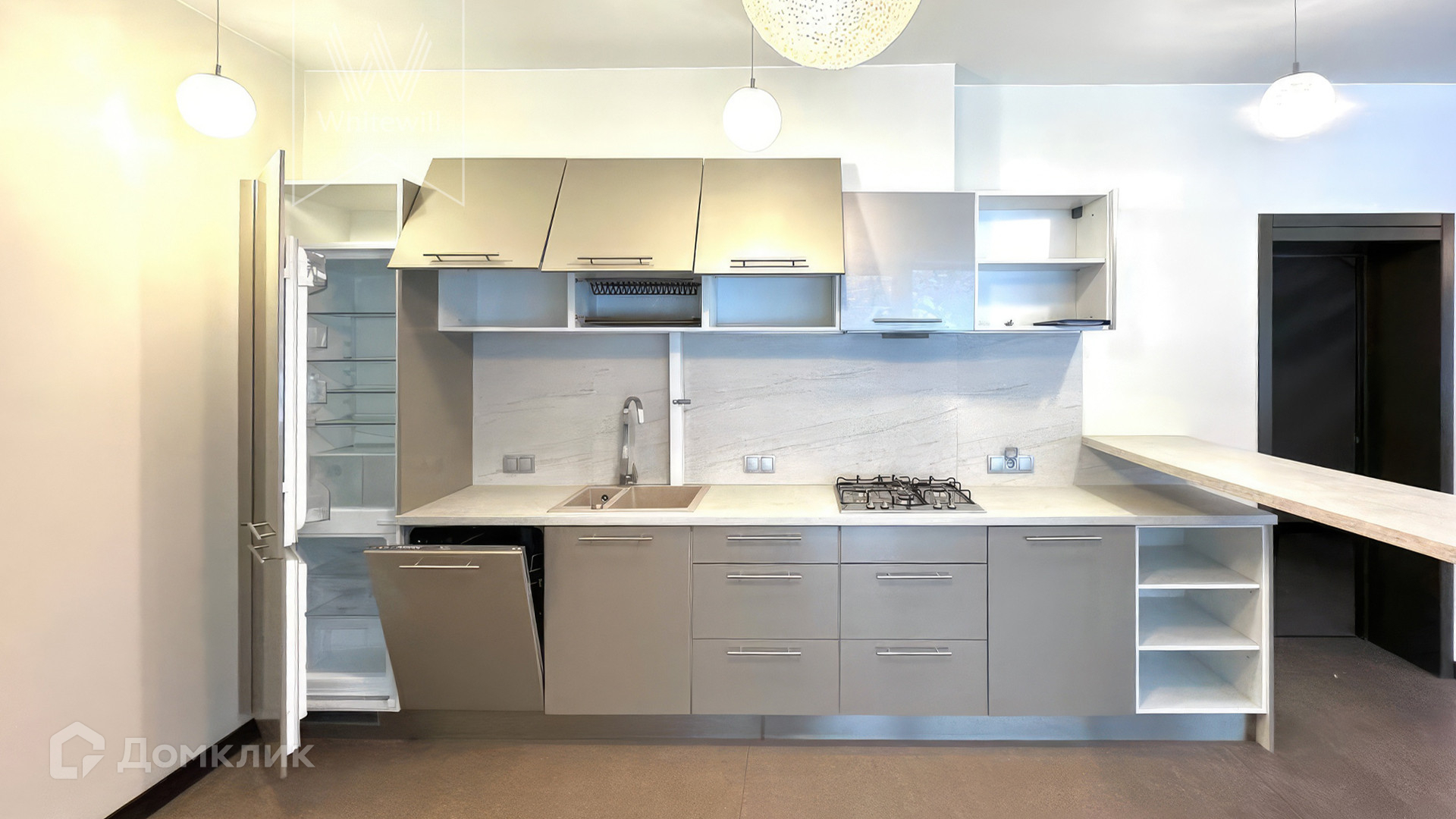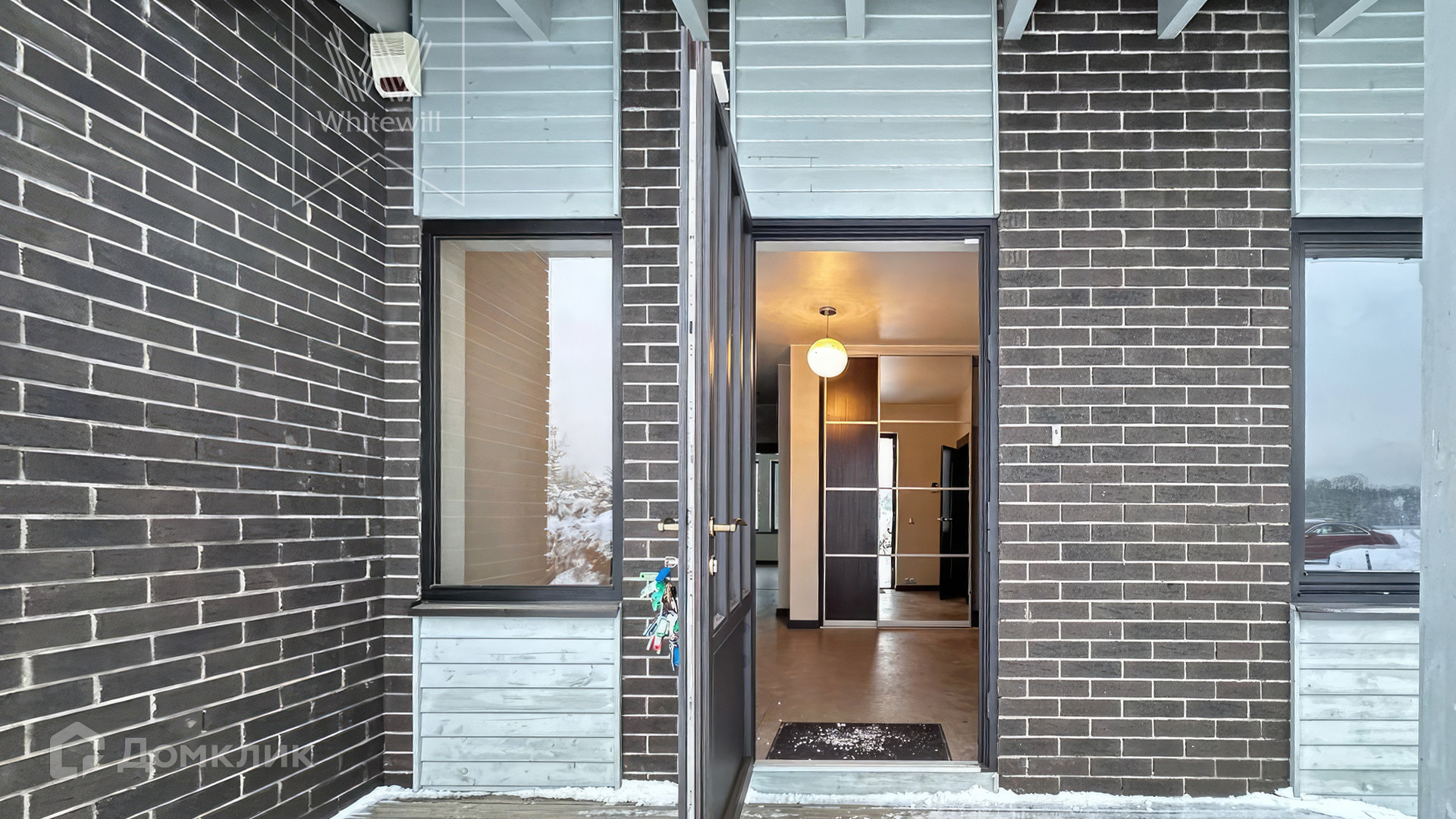 ID 12 031. Дарьино-Успенское. Загородный дом в современном стиле площадью 178 м² расположен среди леса. Фасад облицован коричневым клинкерным кирпичом со вставками из затонированного в белый дерева. В интерьере сохранена деревянная фактура, создающая атмосферу тепла и уюта. В коттедже спланировали 4 спальни, кухню, 3 санузла и просторную студию с панорамным остеклением. Дом укомплектован кухонной мебелью и бытовой техникой. Предусмотрена индивидуальная крытая парковка на 2 машины и собственная прилегающая территория.