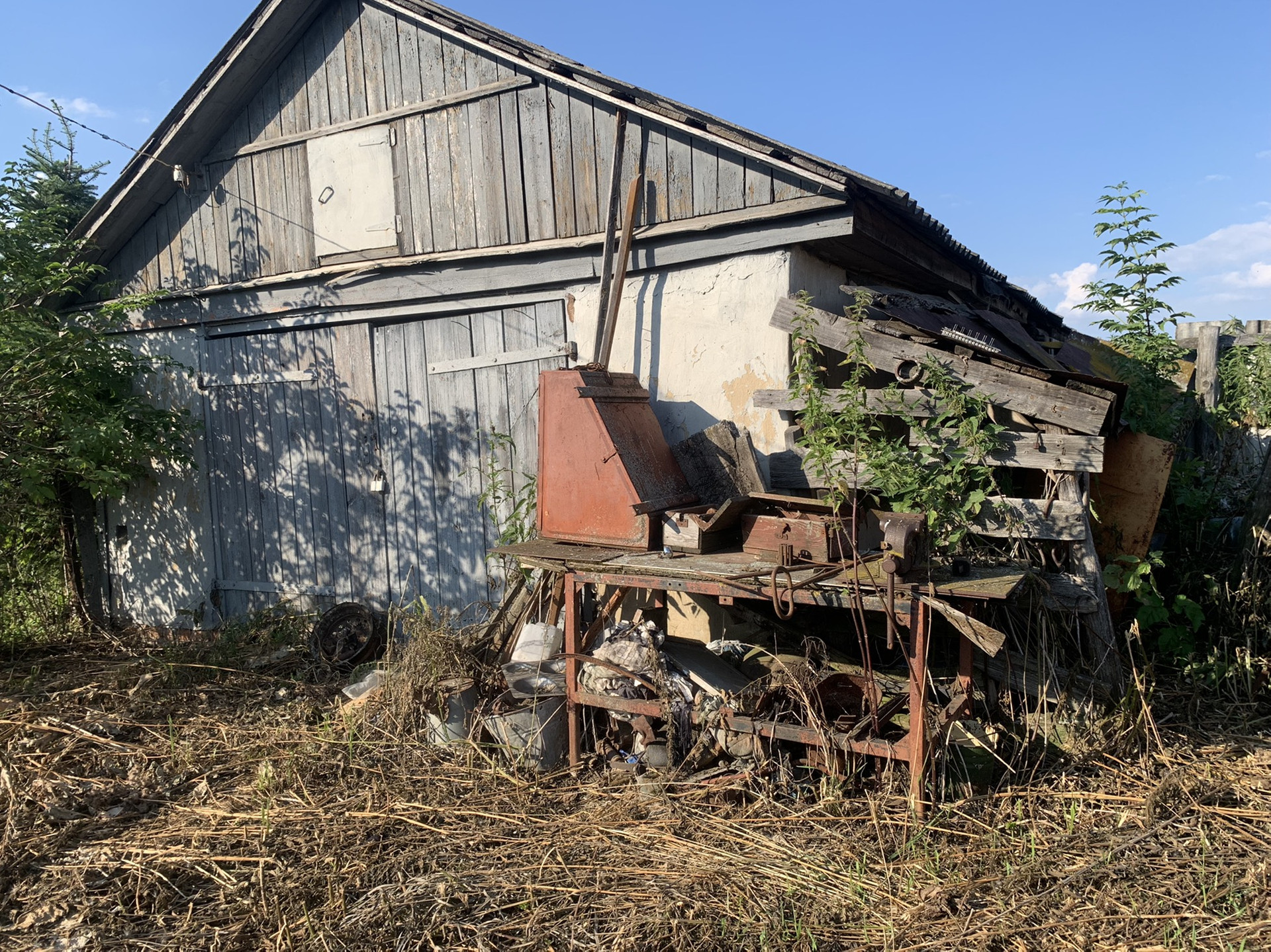 Также на территории имеется кирпичный гараж. Через забор,ближе к речке бывшая территория сада и сеновала.