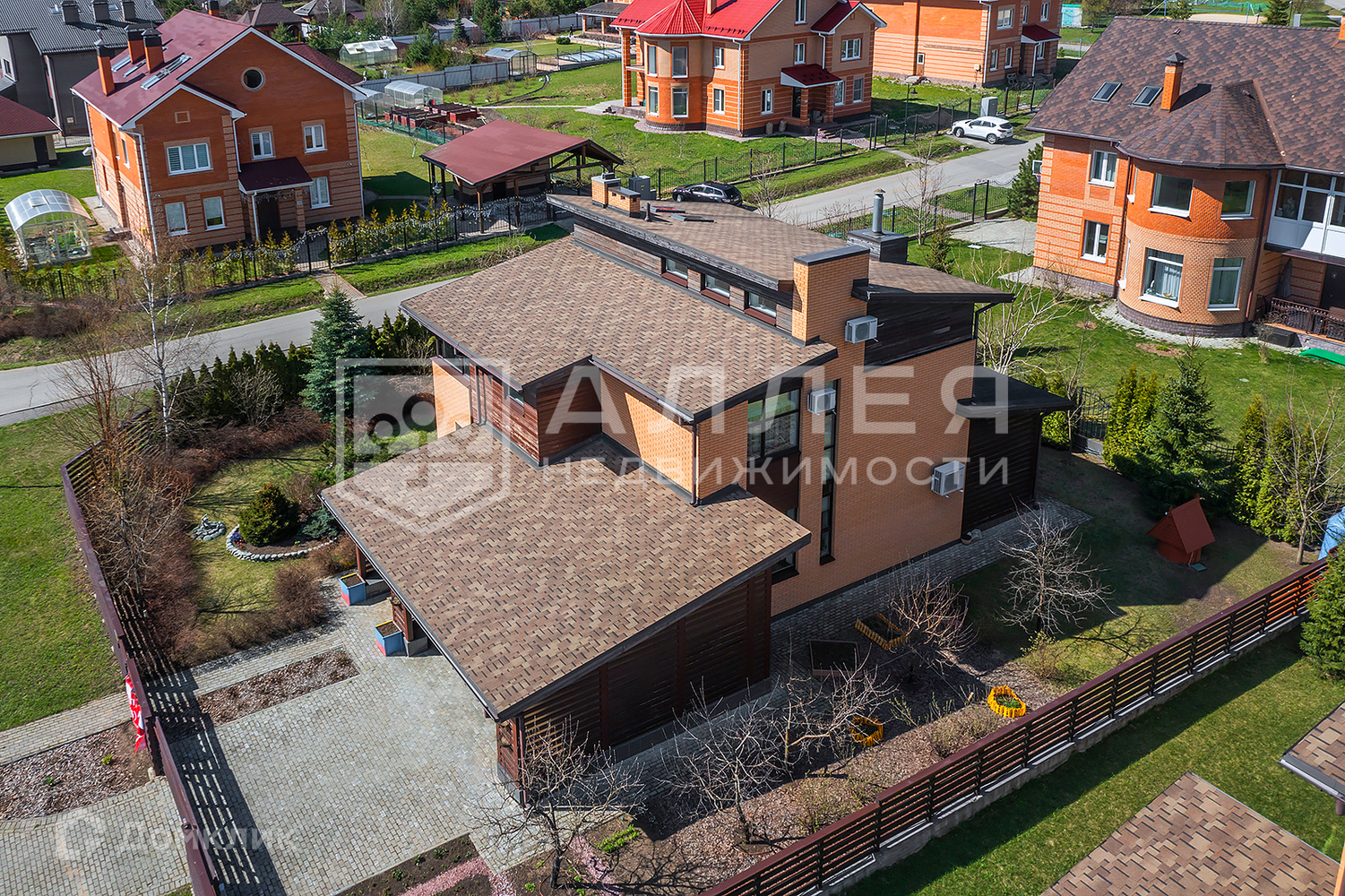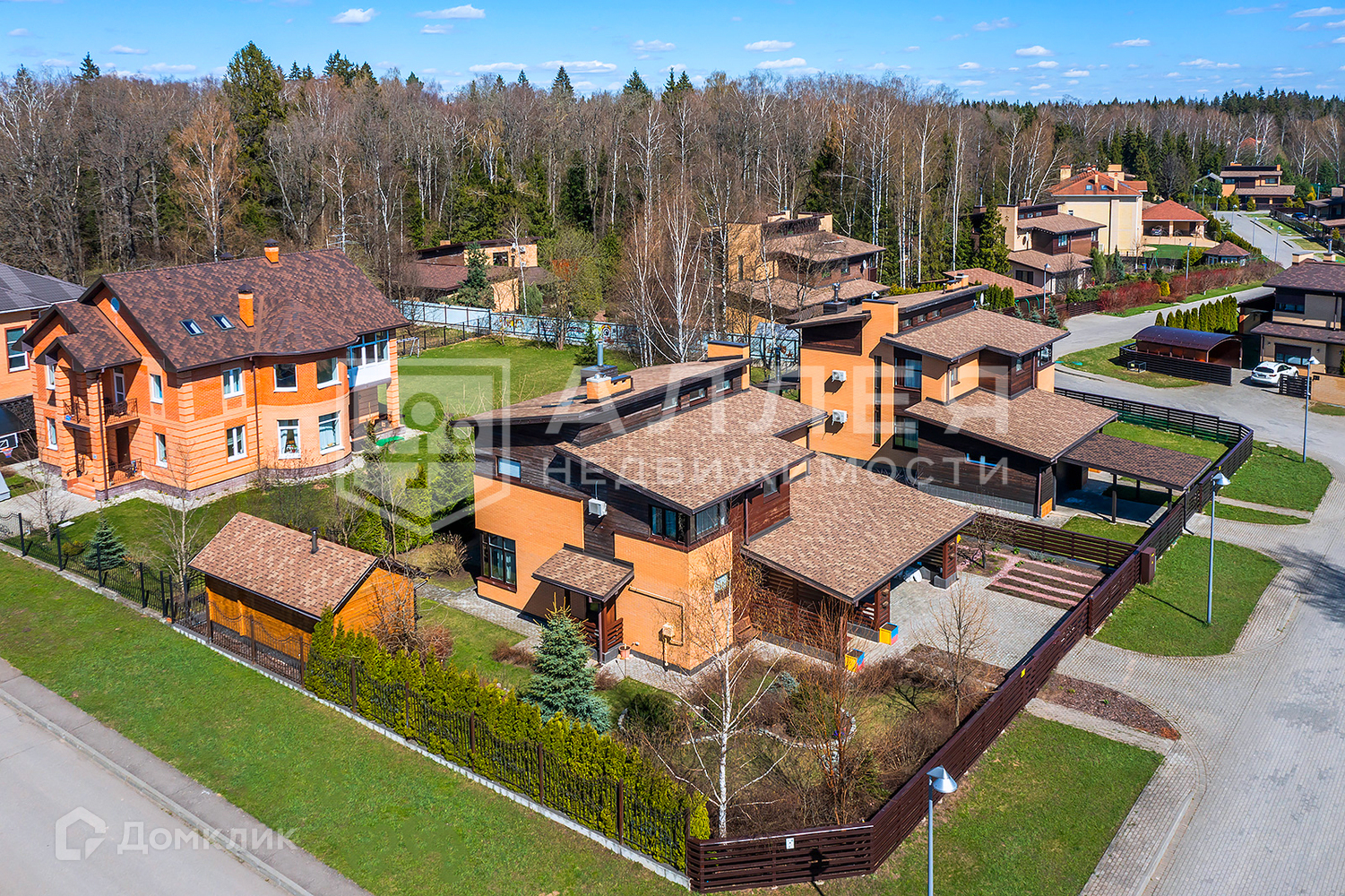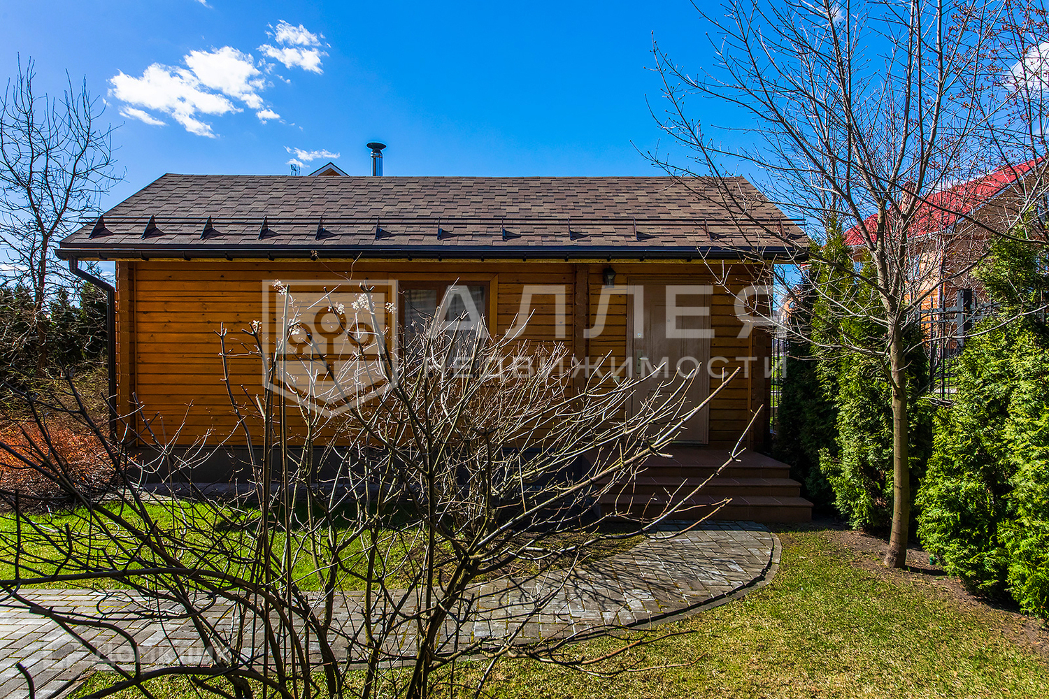 Участок: Ровный участок правильной формы с ландшафтным дизайном. Есть баня на дровах. Навес на две автомашины. Высажены взрослые деревья, выложен газон. Дорожки из брусчатки. С участка открывается замечательный вид на лесной массив, который окружает поселок со всех сторон. Все соседи построились и живут круглогодично.