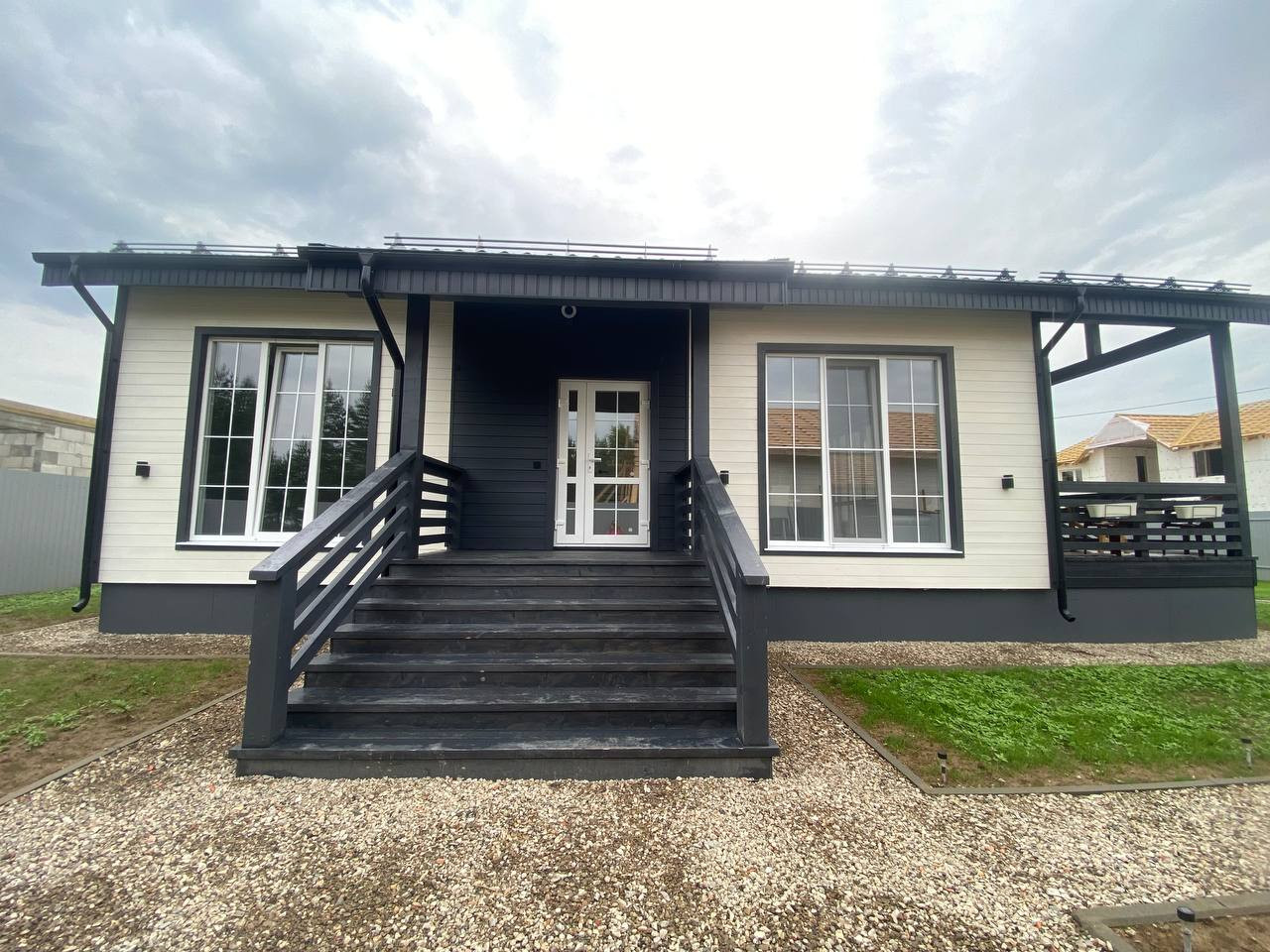 В стоимость входит: земельный участок, дом с инженерными коммуникациями (разведено электричество, водоснабжение, канализация, отопление - теплые водяные полы с полусухой стяжкой, установлен котел и водонагреватель), а также ремонтом.