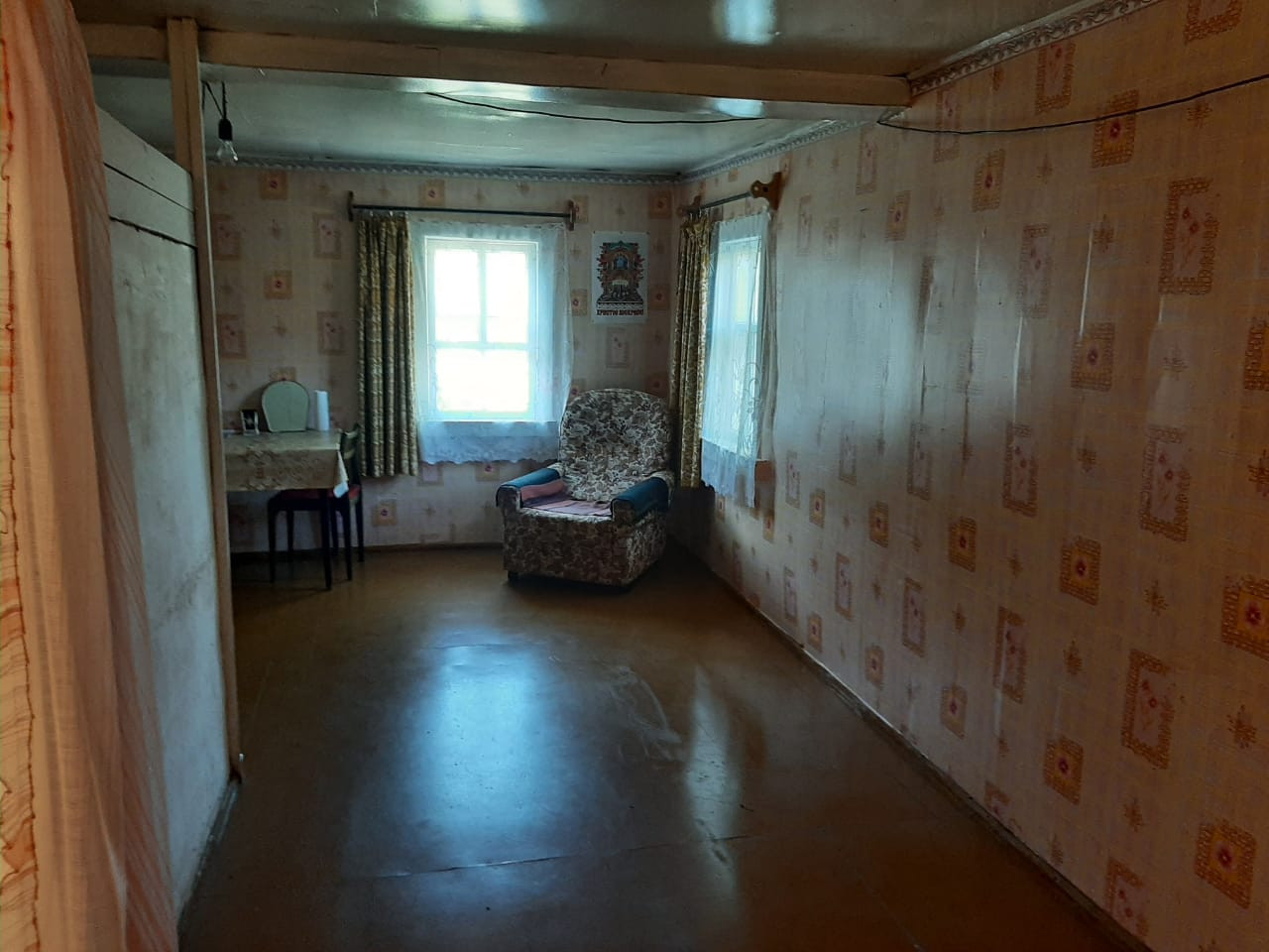 - Большой дом из бревна, крыша покрыта металлом, фундамент лента. Отопление русская печь, в каждом доме.