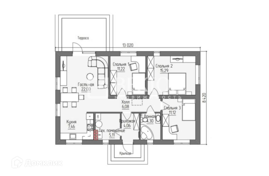 Количество комнат 3