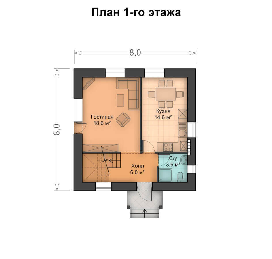 ДОМ С КРЫЛЬЦОМ: фундамент, ж/б перекрытие, стены (55 см: блок с облицовкой кирпичом), окна, дверь, крыша с утеплением