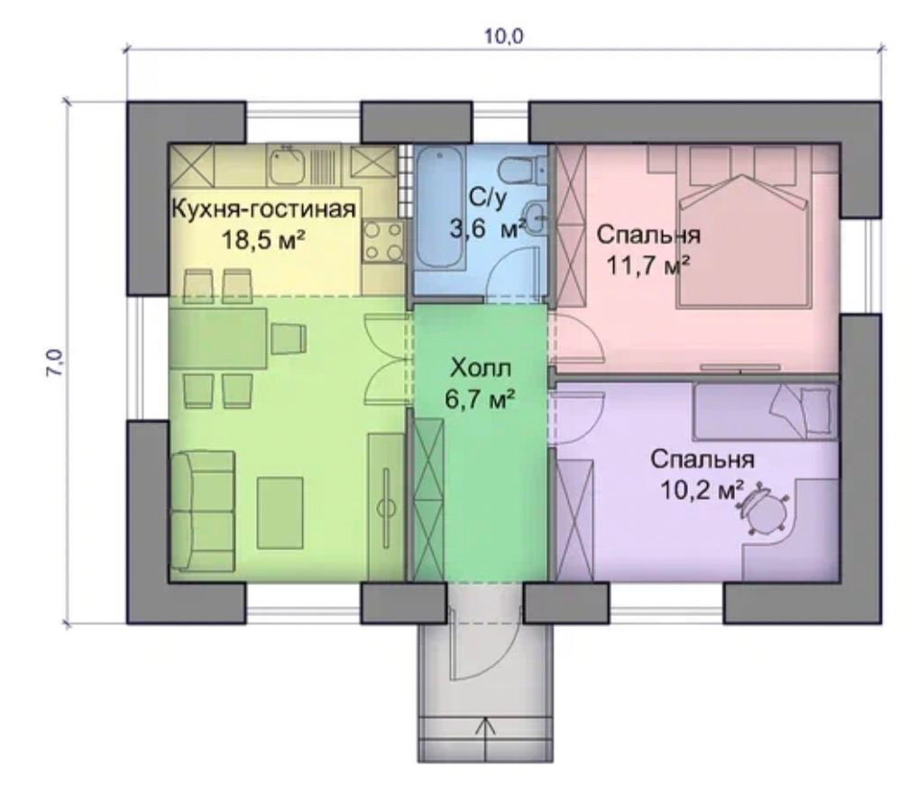 Общая площадь 70 м2