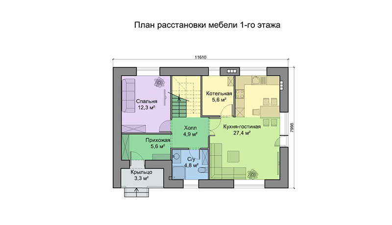 Дом с крыльцом, : фундамент, ж/б перекрытие, стены (55 см: блок с облицовкой кирпичом), окна 70 мм КВЕ, дверь, крыша с утеплением базальтовой ватой.