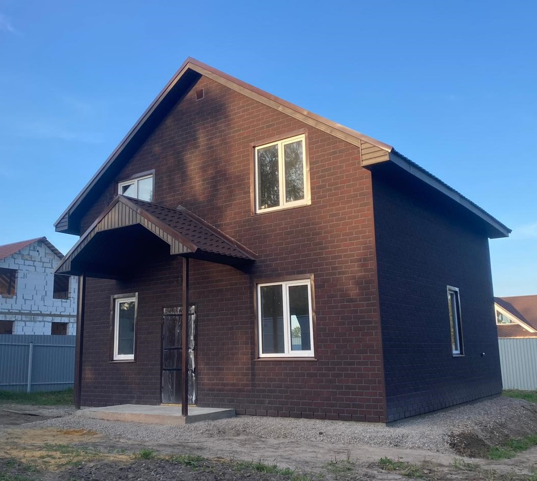 Утеплён и обшит дизайнерским стильным материалом под кирпич.
