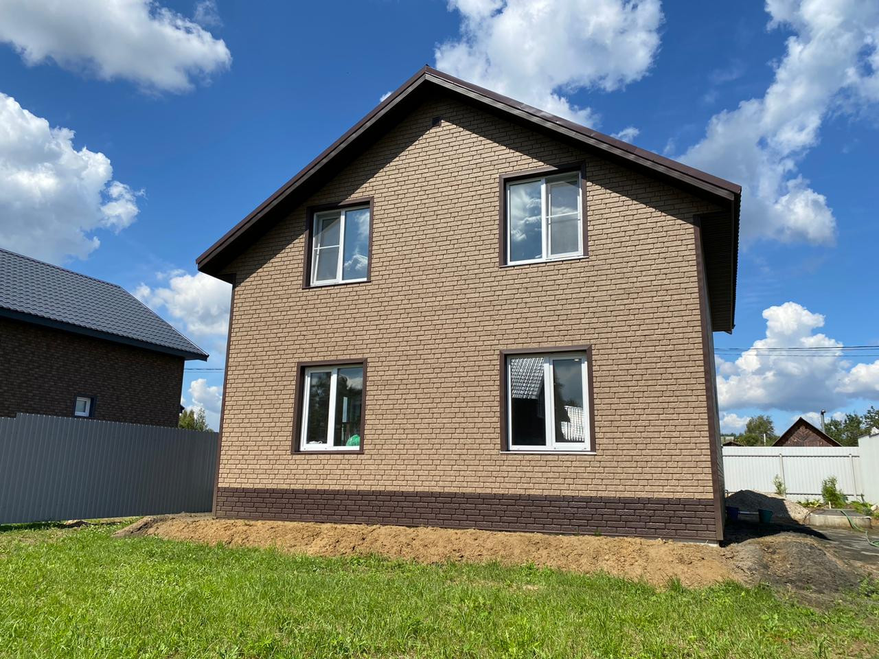 Площадь дома 120 квадратных метров, 2 этажа. Фундамент-монолитная плита, утеплён. Стены газоблок + утеплитель + пеноплекс + наружная отделка(новые технологии- влагостойкие фасадные декоративные панели), между этажами качественный армопояс.