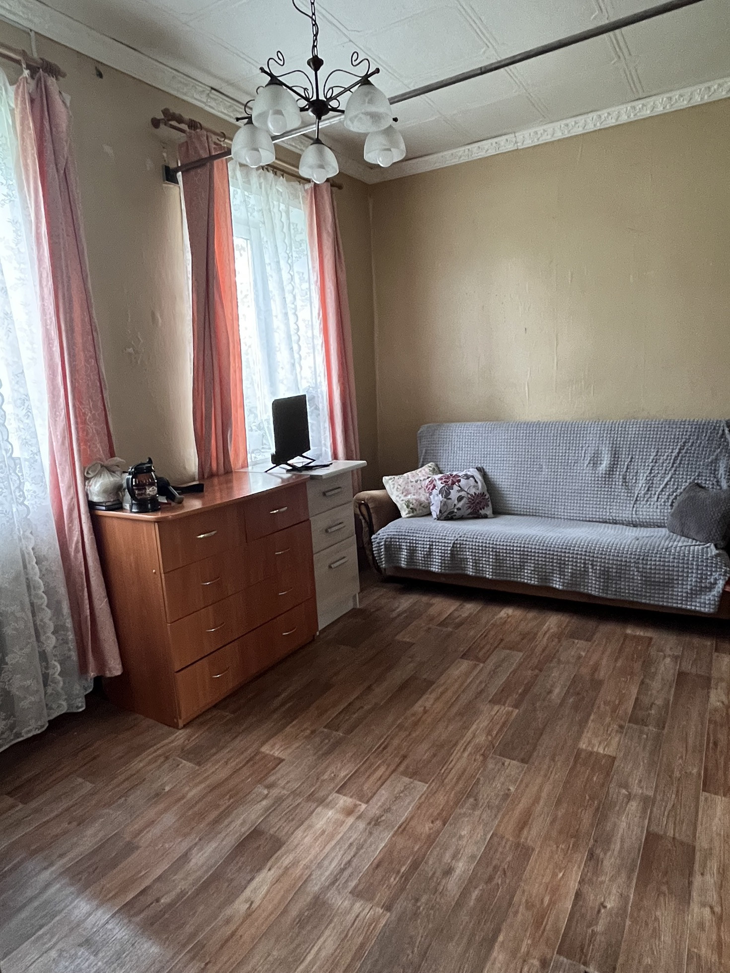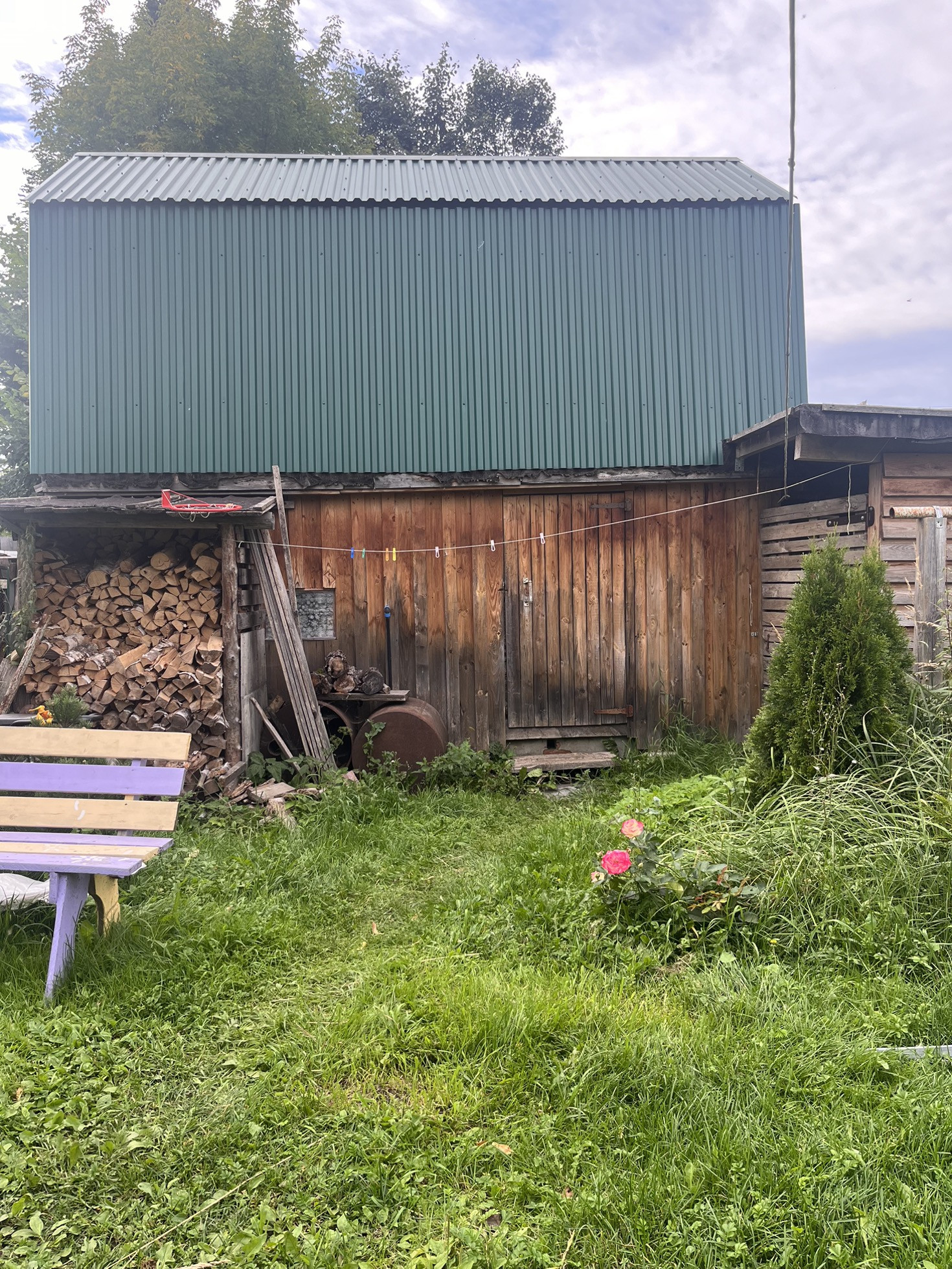 В доме 2 светлых комнаты( изолированная и проходная), кухня и санузел (унитаз, душевая кабина, раковина), сухой подпол, старый пристрой, хорошая баня на участке с чердаком. В баню заходит летний водопровод. Крыша металл, рядом сарай, вольер для собаки.