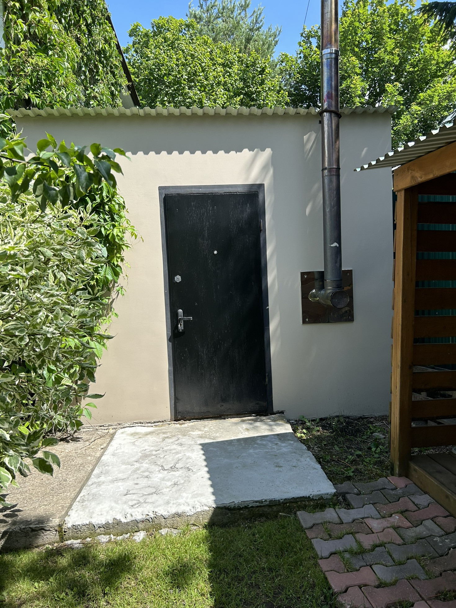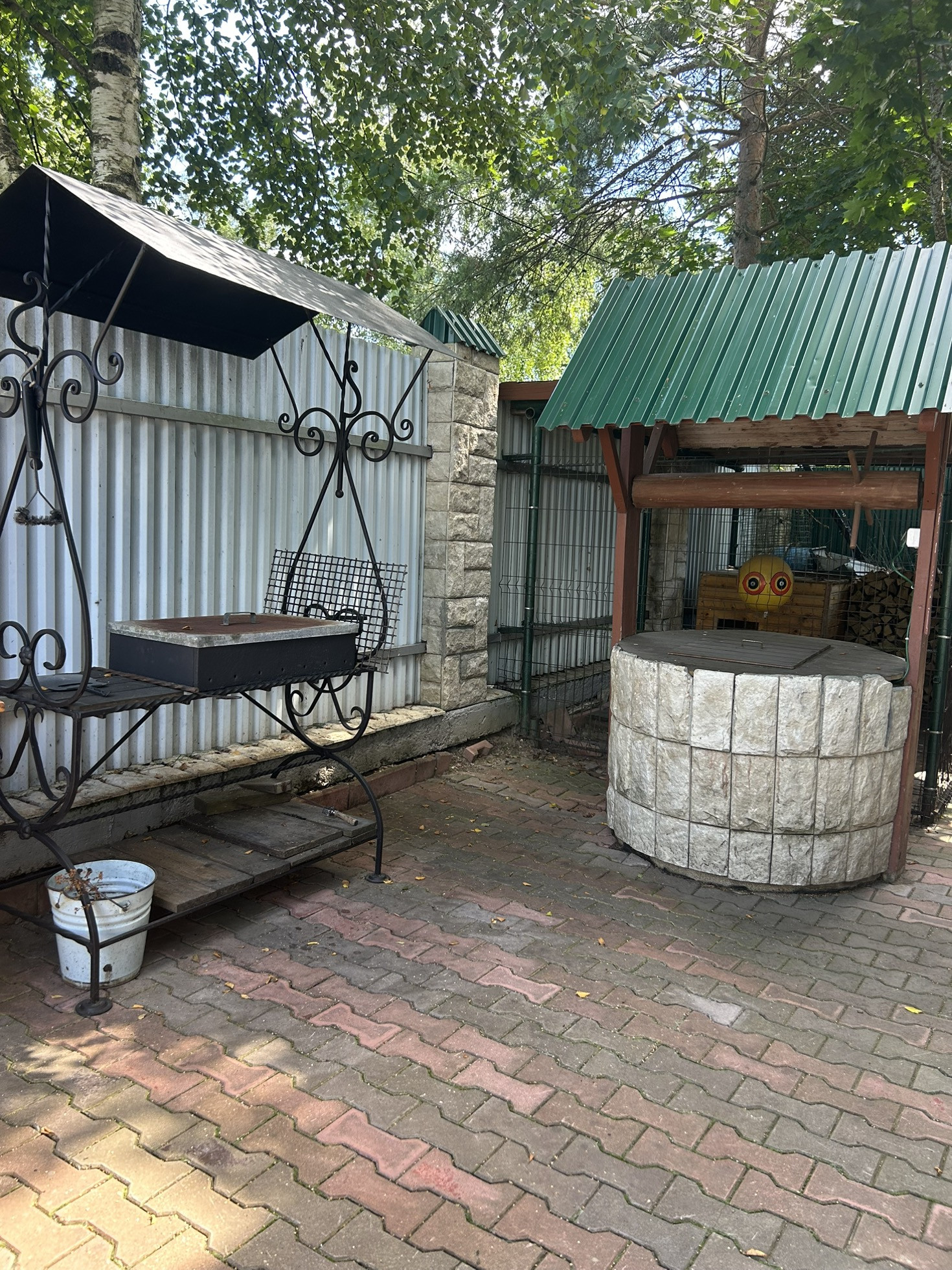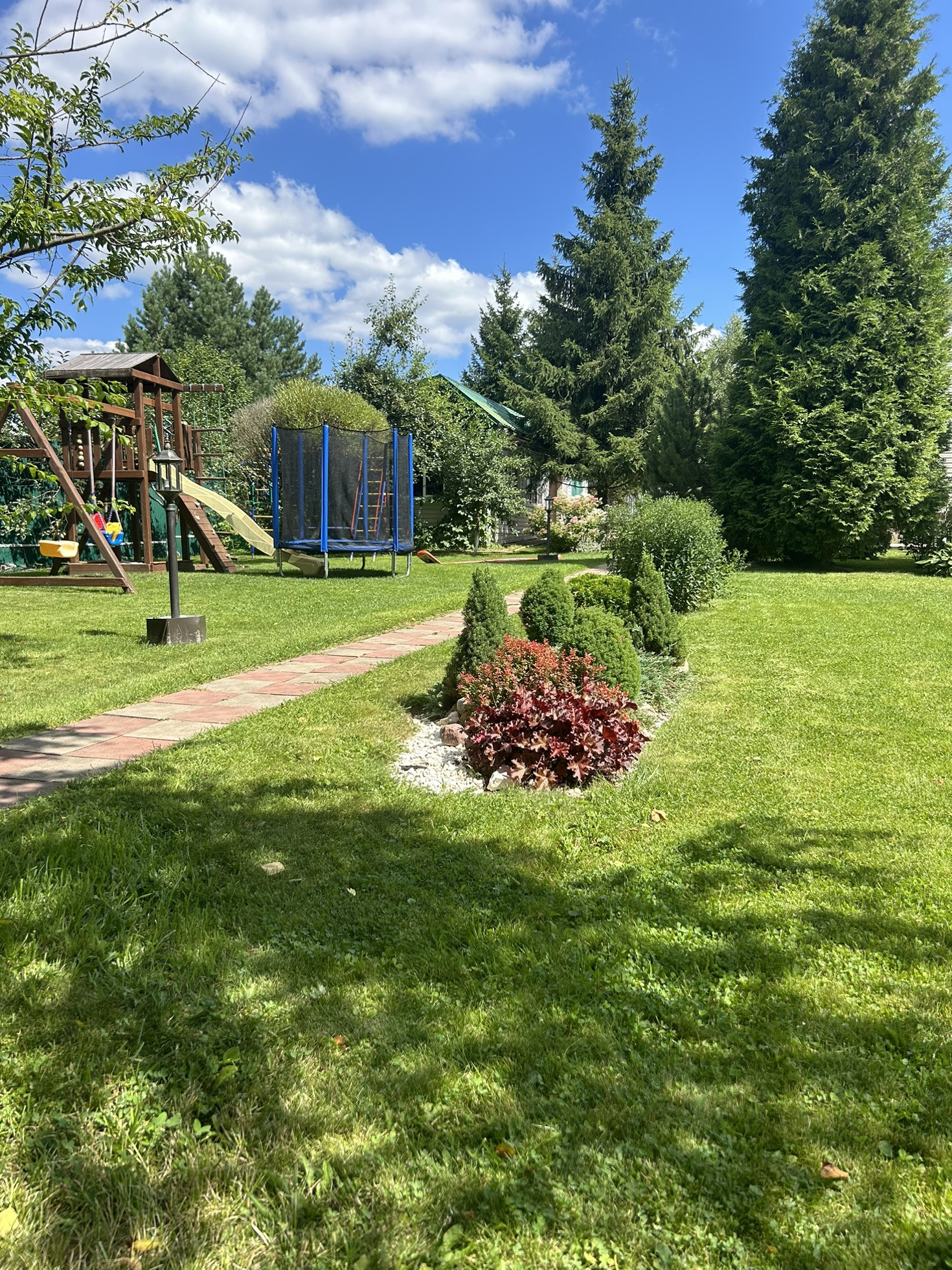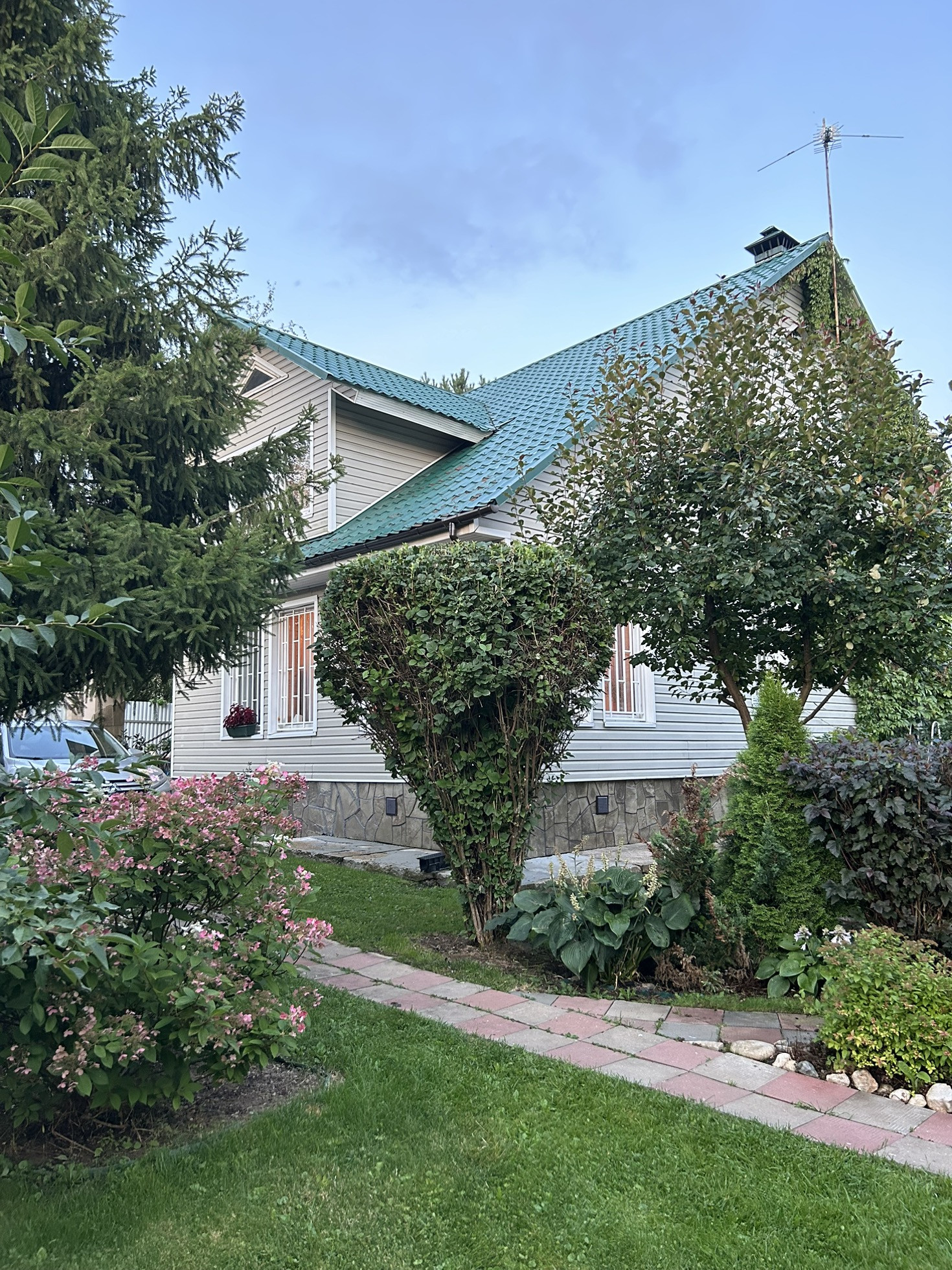На участке имеется: баня (5*7), летняя кухня, котельная, туалет летний, детская площадка, парник, гараж, навес на 1 машину, веранда, парковка на 3 машины, зона барбекю, фруктовые деревья, вольер для собаки.