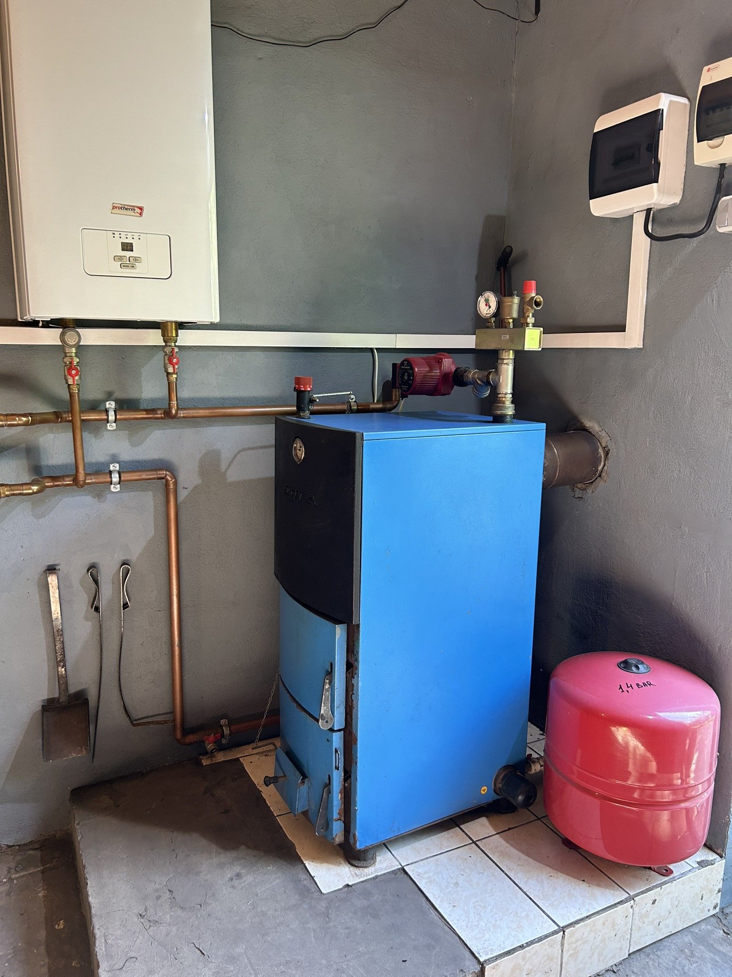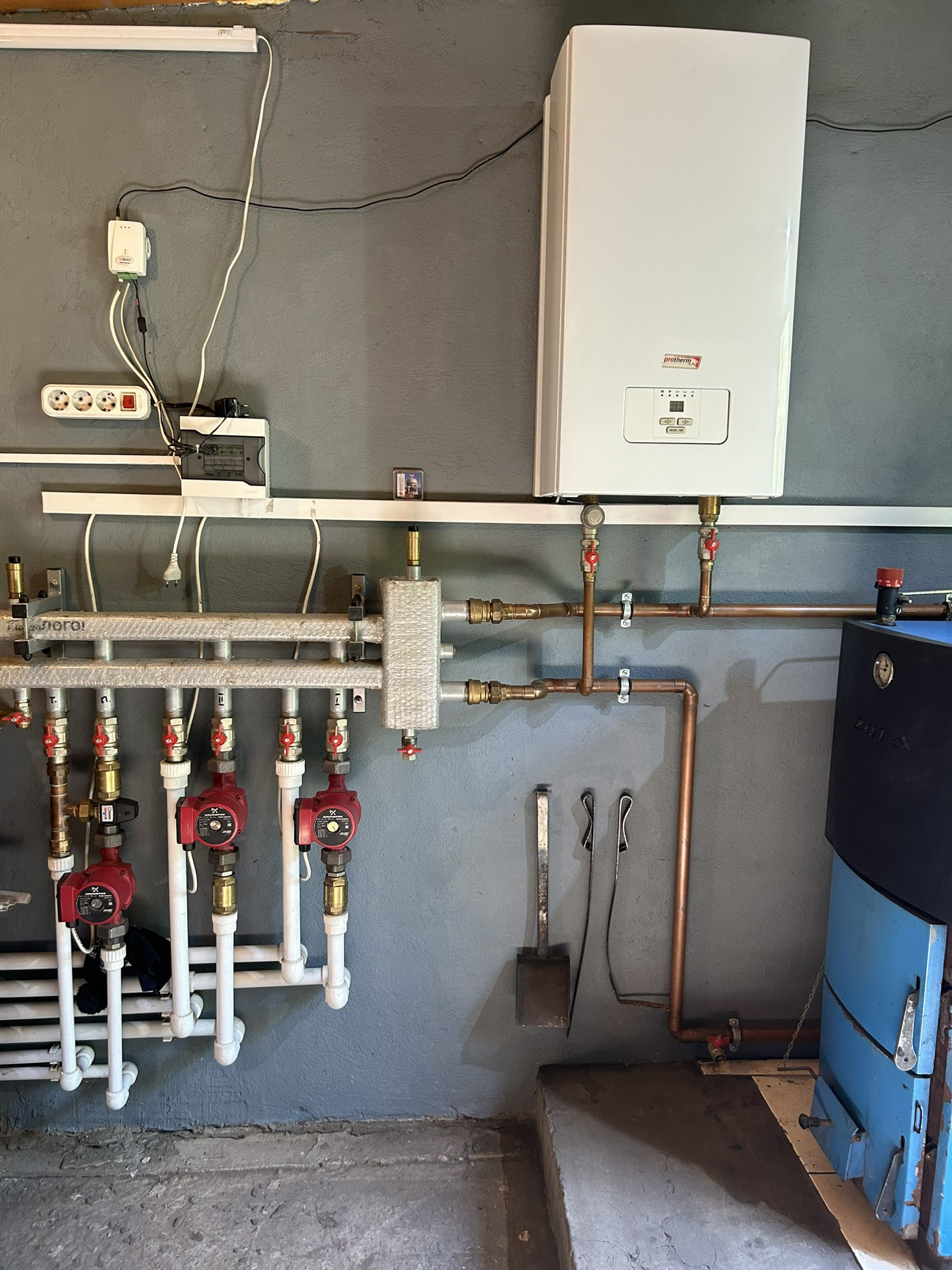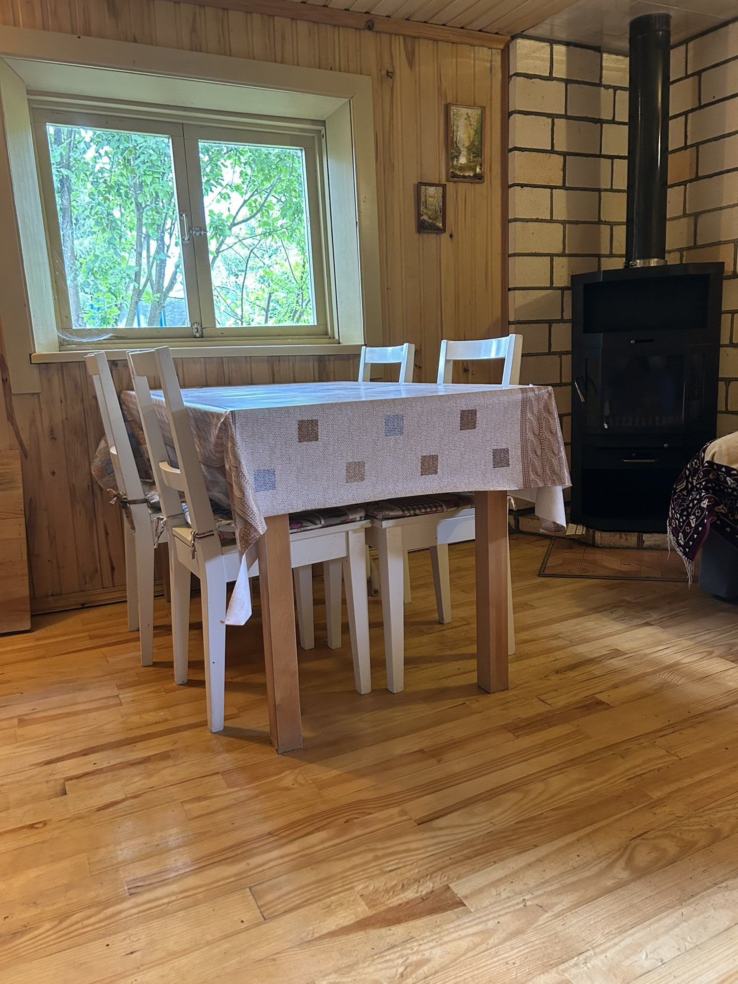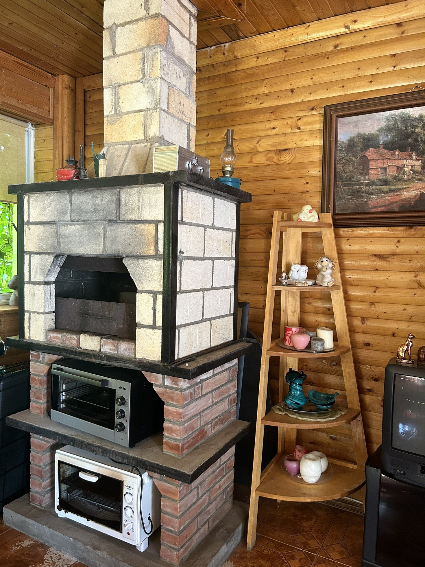 - отопление- электрический котел с системой дистанционного управления, котел для твердого топлива ( дрова, уголь), камин.