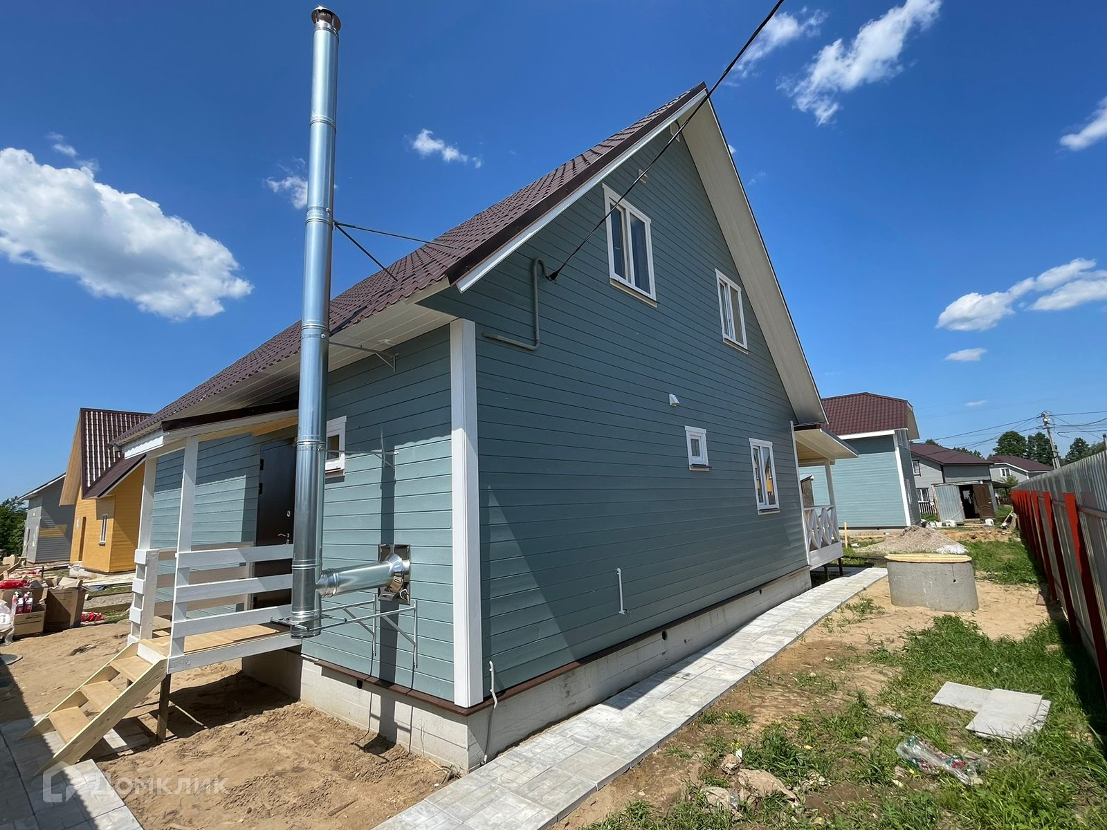Участок с забором, распашные ворота, калитка, парковка и плитка до дома. Современный дом,полностью готовый для круглогодичного проживания.