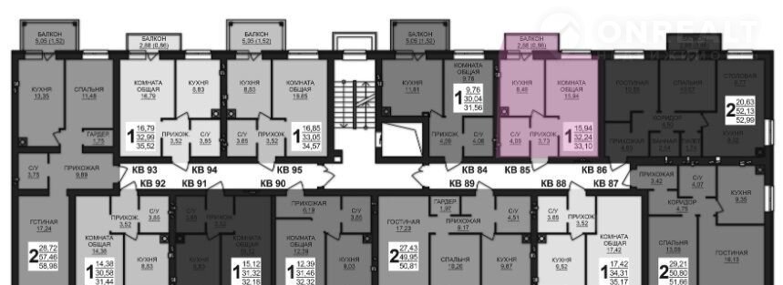 Балкон, лоджия 1 балкон