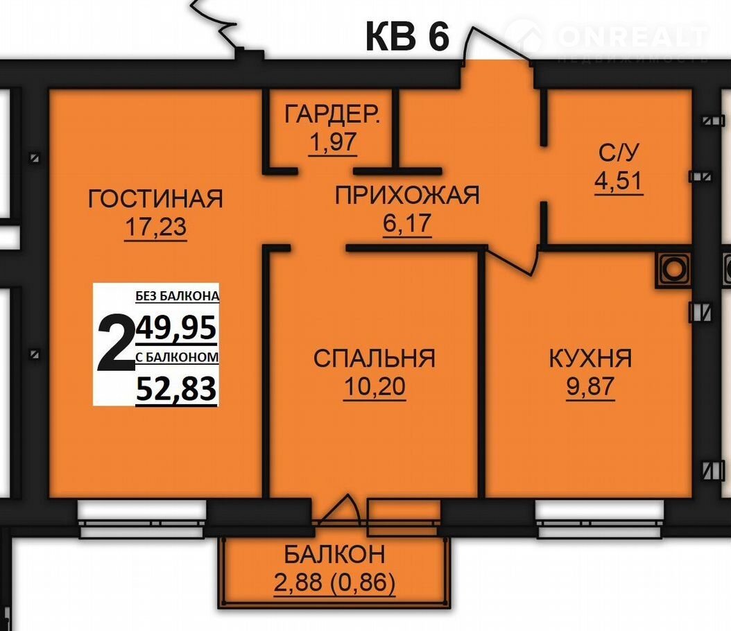 Общая площадь 52.7 м2