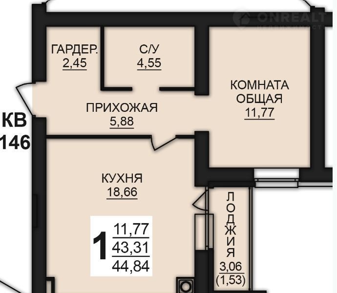 Балкон, лоджия 1 лоджия
