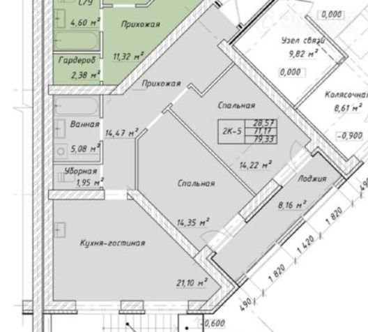 Общая площадь 79.3 м2