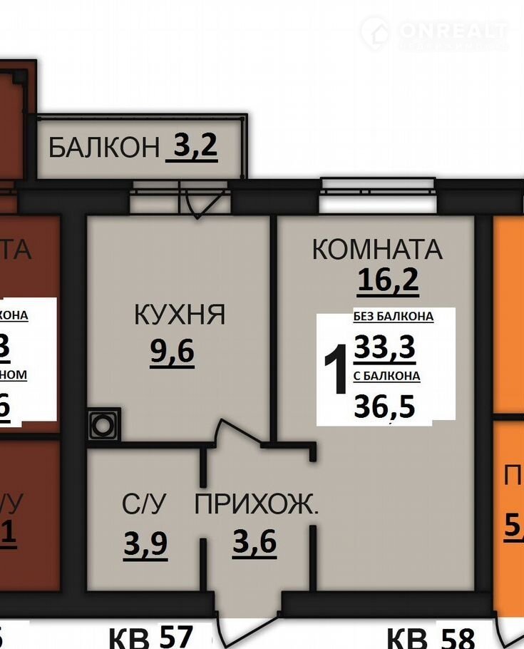 — Общая площадь квартиры: 33,4кв.м