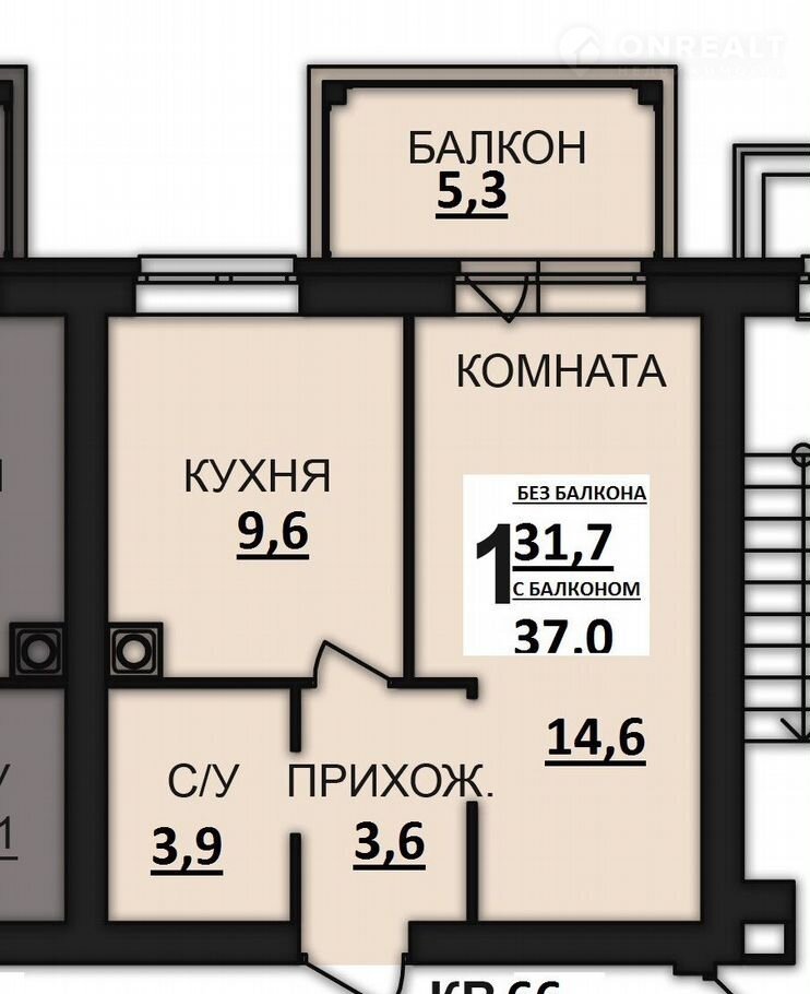 Общая площадь 37 м2