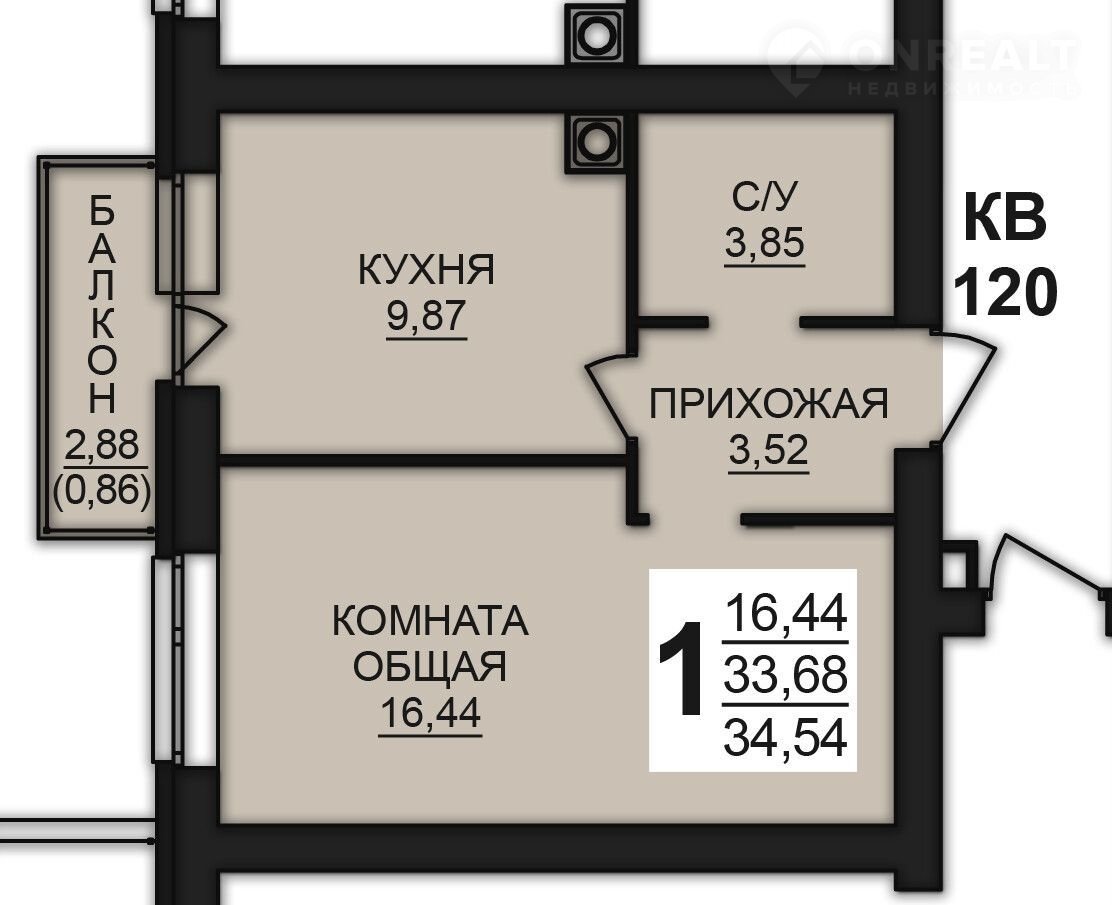 Количество комнат 1