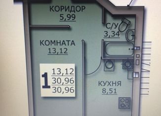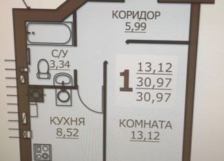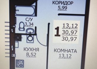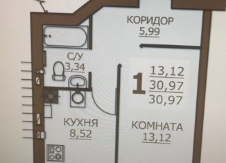 1-комнатная квартира на продажу, 30.97 м2