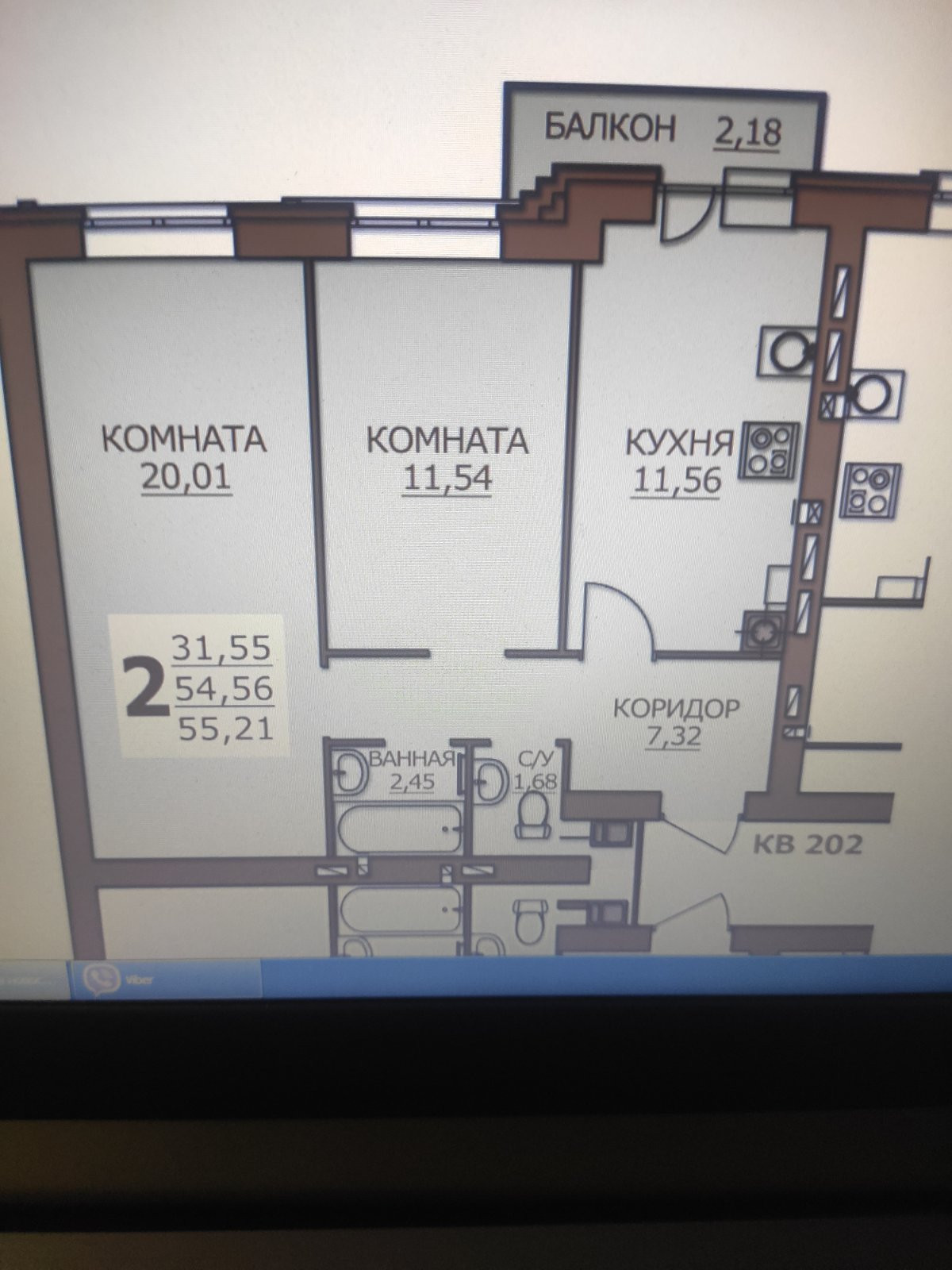 Общая площадь 55.22 м2