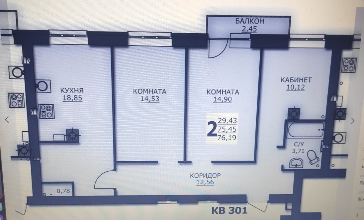 Общая площадь 76.2 м2