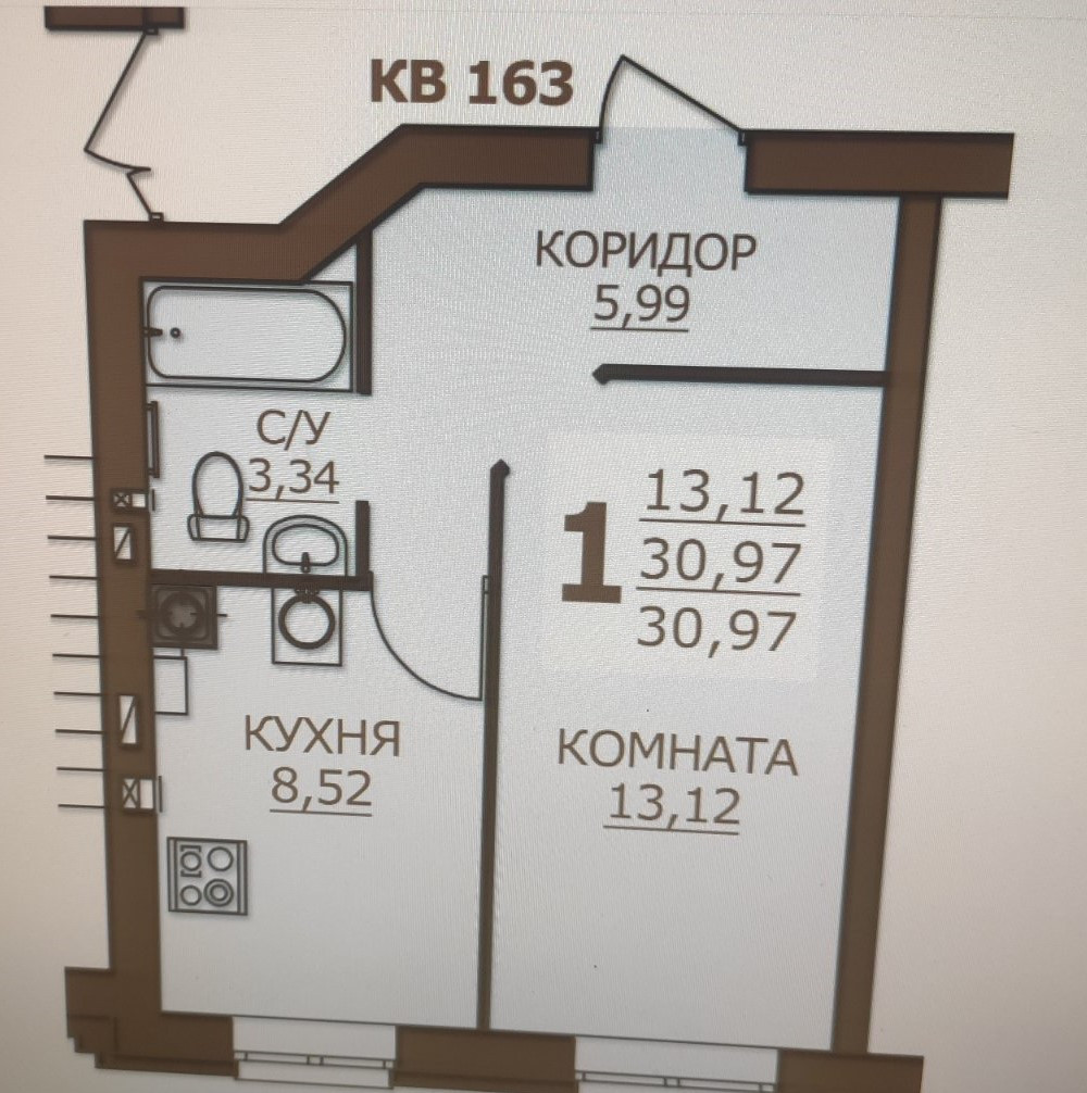Общая площадь 31 м2