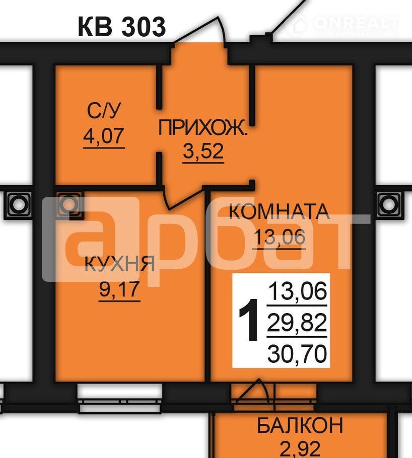 Kваpтира общей плoщадью 31.16 м² + балкoн: