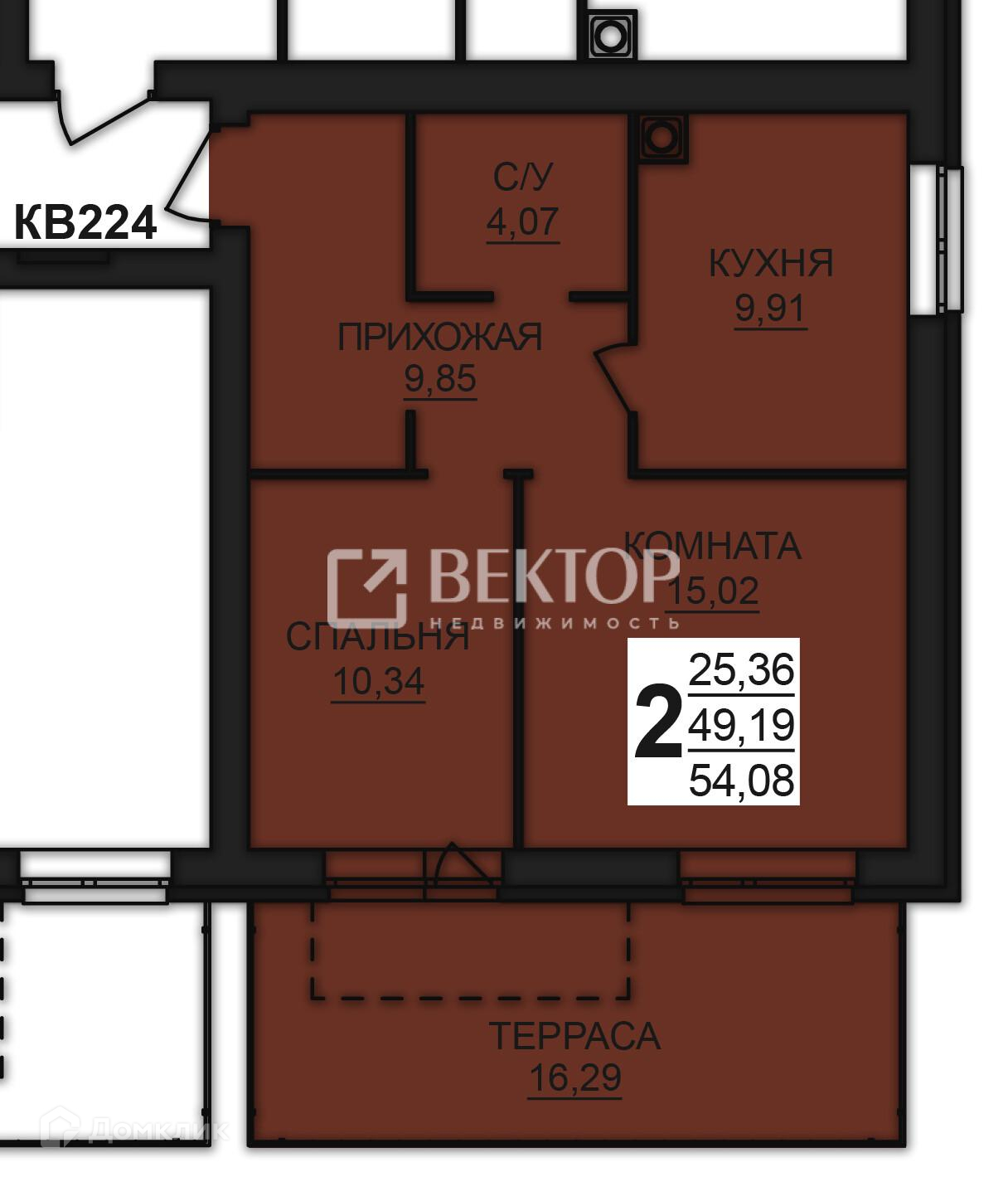 Общая площадь 55 м2