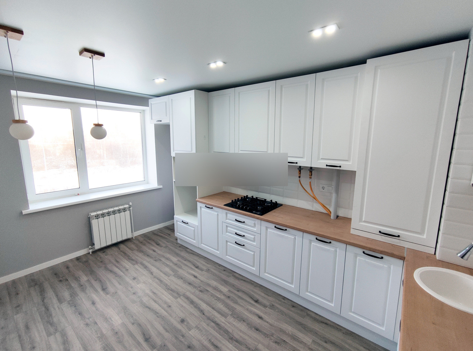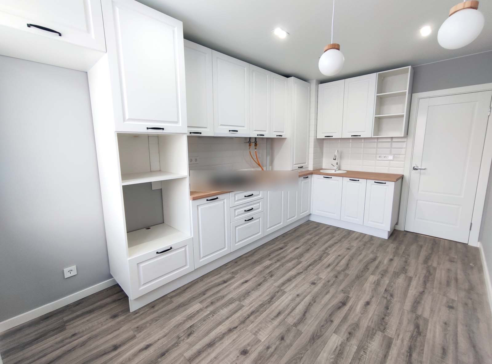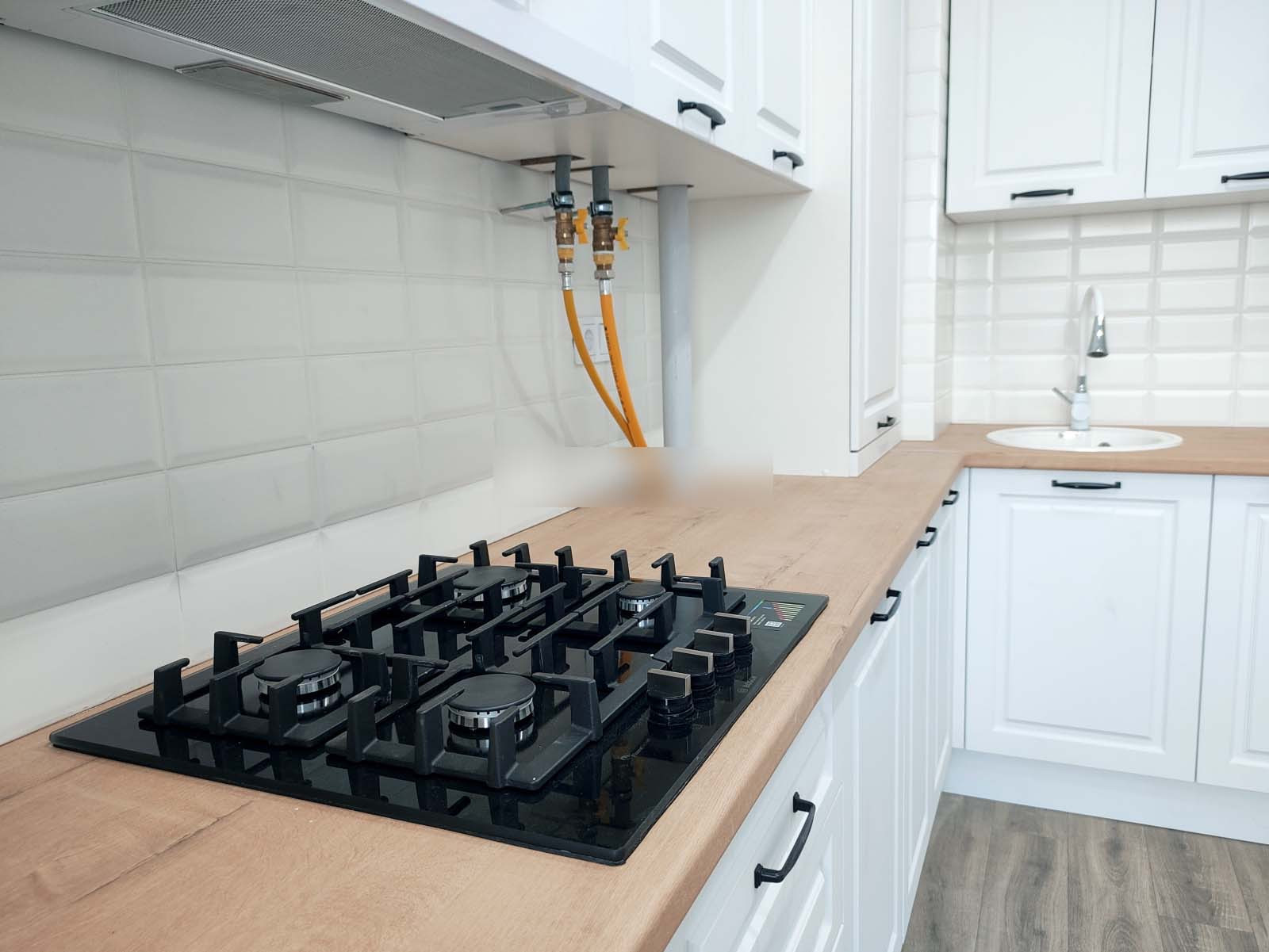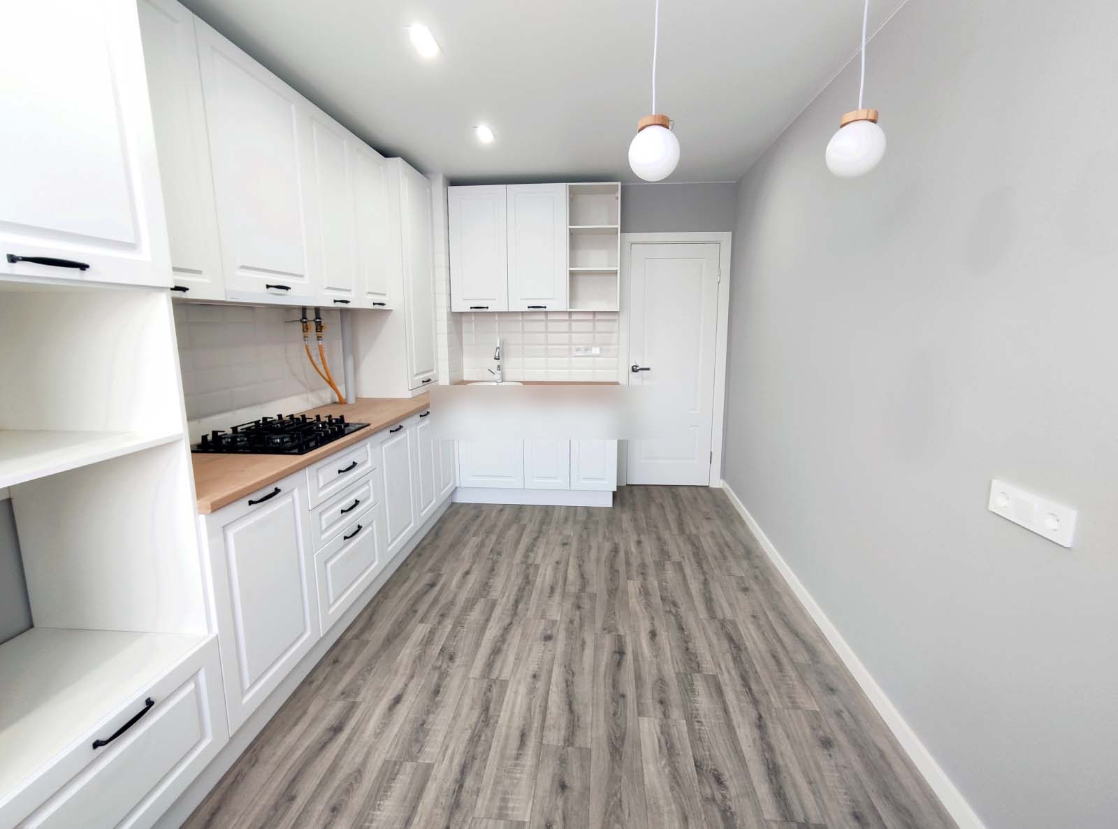 Варочная панель Bosch. Кухонный гарнитур с доводчиками. Обои итальянского производителя.