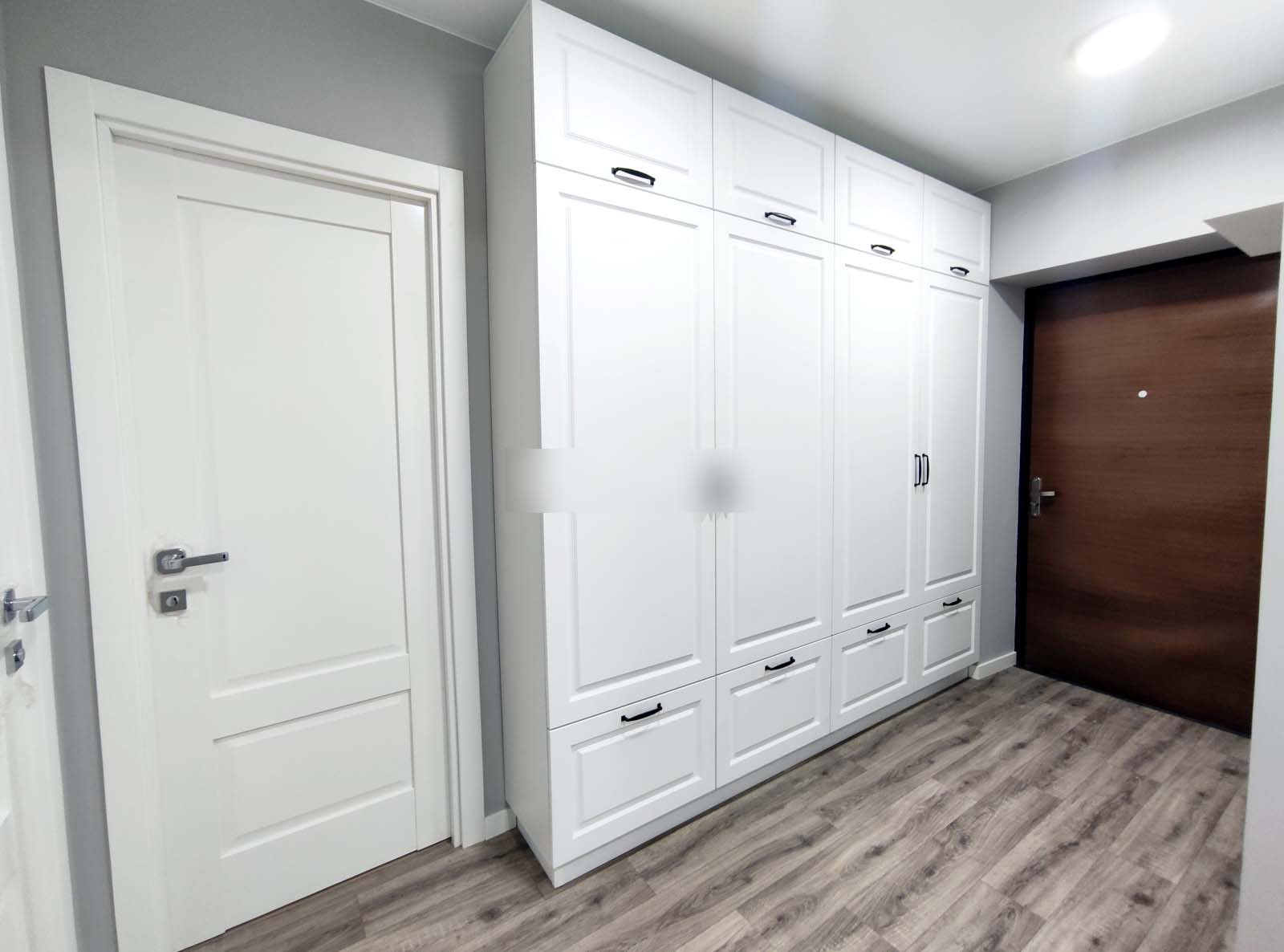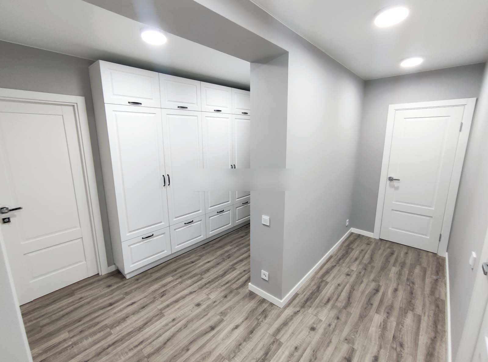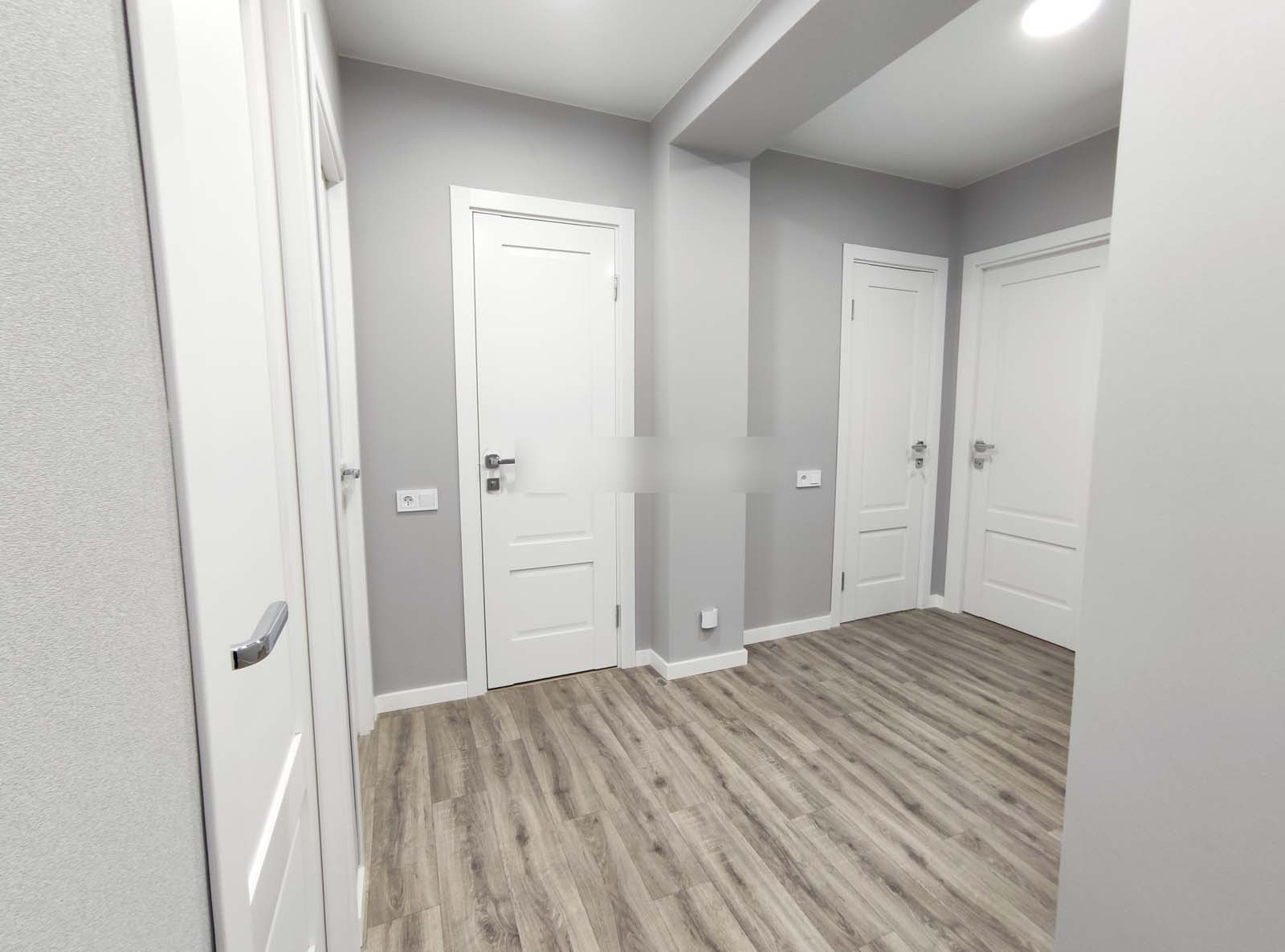 Плинтуса белорусские (МДФ). Дорогие и тяжелые двери эмаль (Владимирская фабрика), фурнитура, петли, замки и ручки фирмы Fuaro.