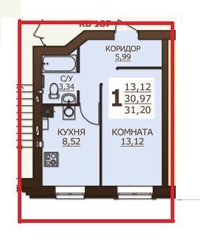 Общая площадь 31.2 м2