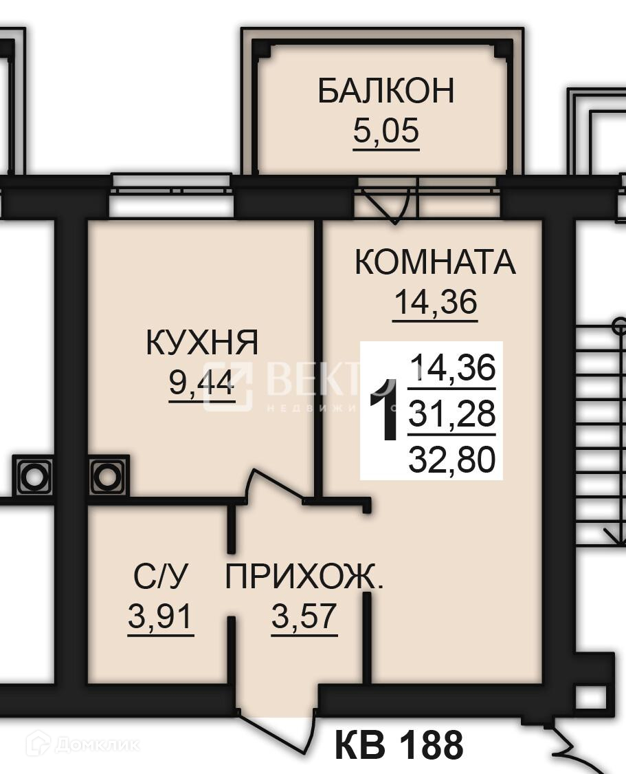 Общая площадь 32.8 м2