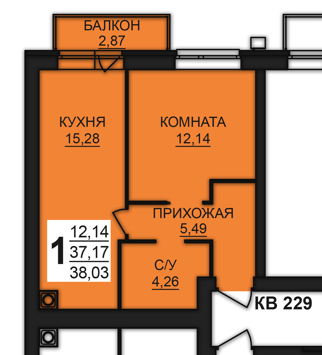 Общая площадь 37.5 м2