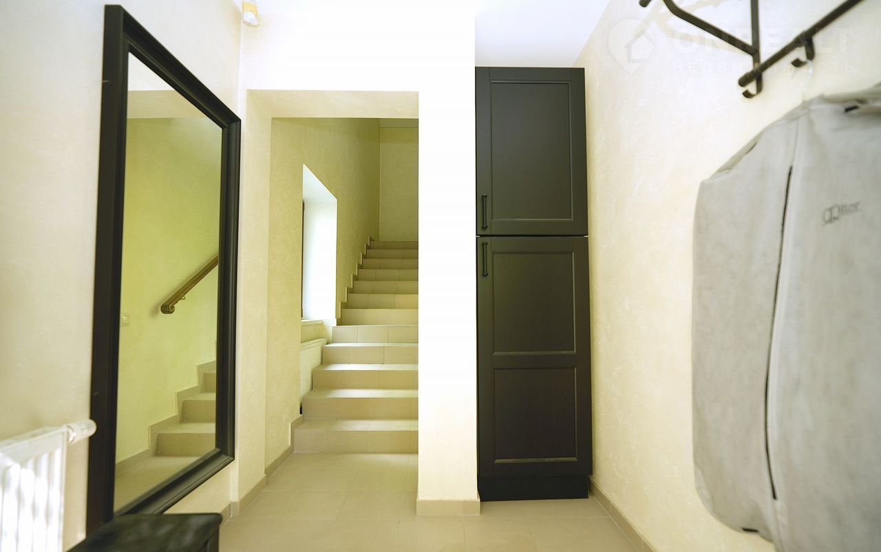 В доме сделана предчистовая отделка, коммуникации заведены и разведены по дому. Электричество 25 кВт, канализация и водоснабжение - центральные, газ - магистральный.