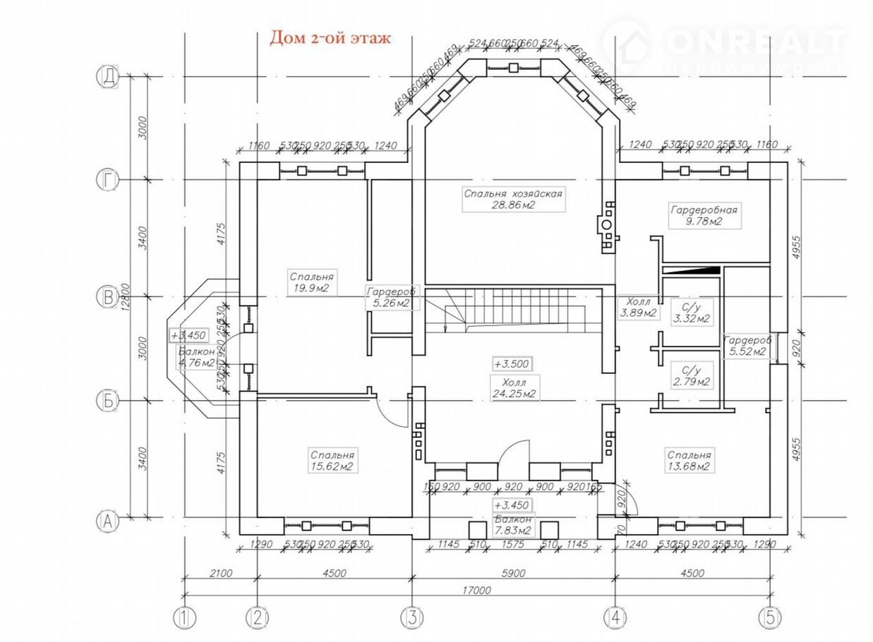 - на втором этаже кухня, две спальни, сан.узел с душевой комнатой, гардеробная.