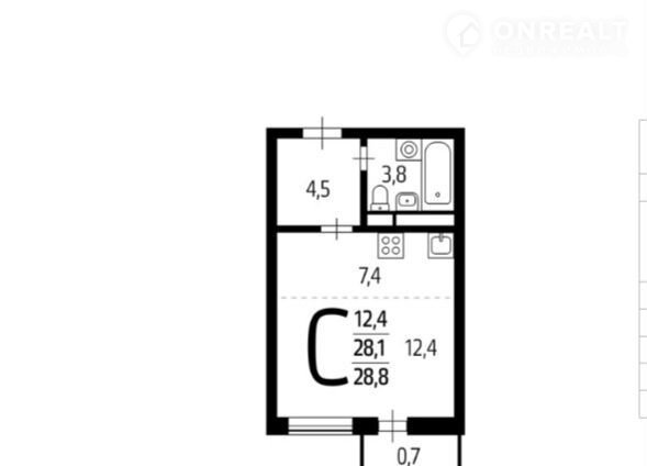 - Площадь: 29 м² (жилая — 12,4м², куxня — 7,2м²).