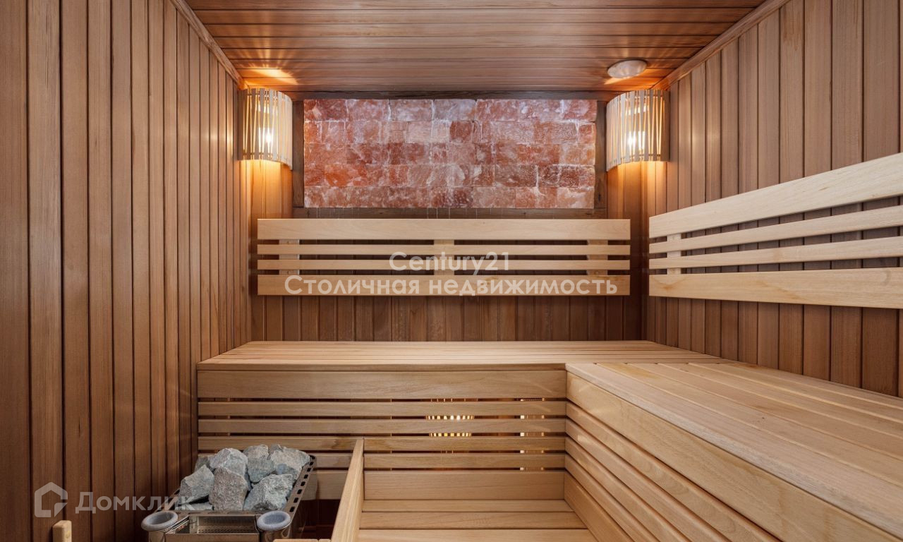Первый этаж: прихожая, гостиная с камином, кухня, сауна, спортивный зал, винный погреб, с/у, котельная, гараж. Второй этаж: холл, мастер спальня, с/у, большая душевая с водопадом, кабинет, гардеробная, отдельная зона для гостей (прислуги).