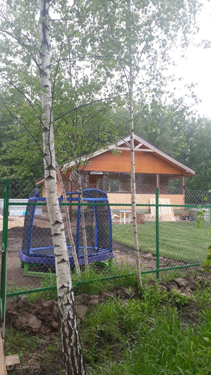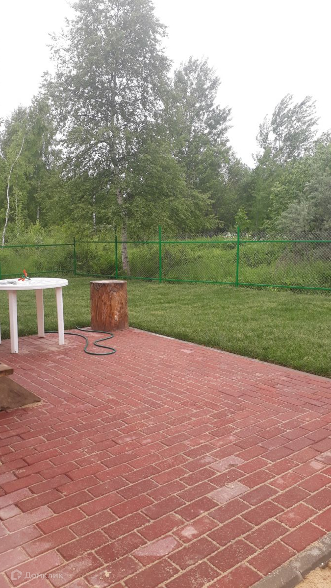 Участок с выходом к своей зоне отдыха. Огорожен забором из профнастила с фасада и сеткой «рабица» внутри. Перед террасой на участке очень качественный газон. Есть парковка перед домом на 2 машины. Перед домом лесной массив.