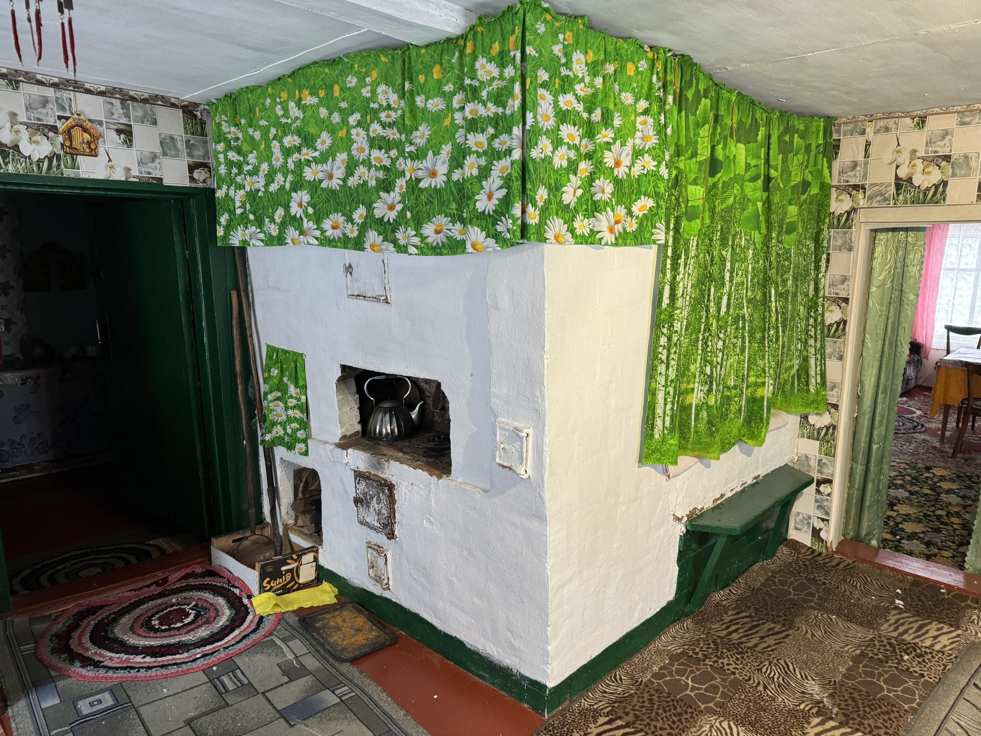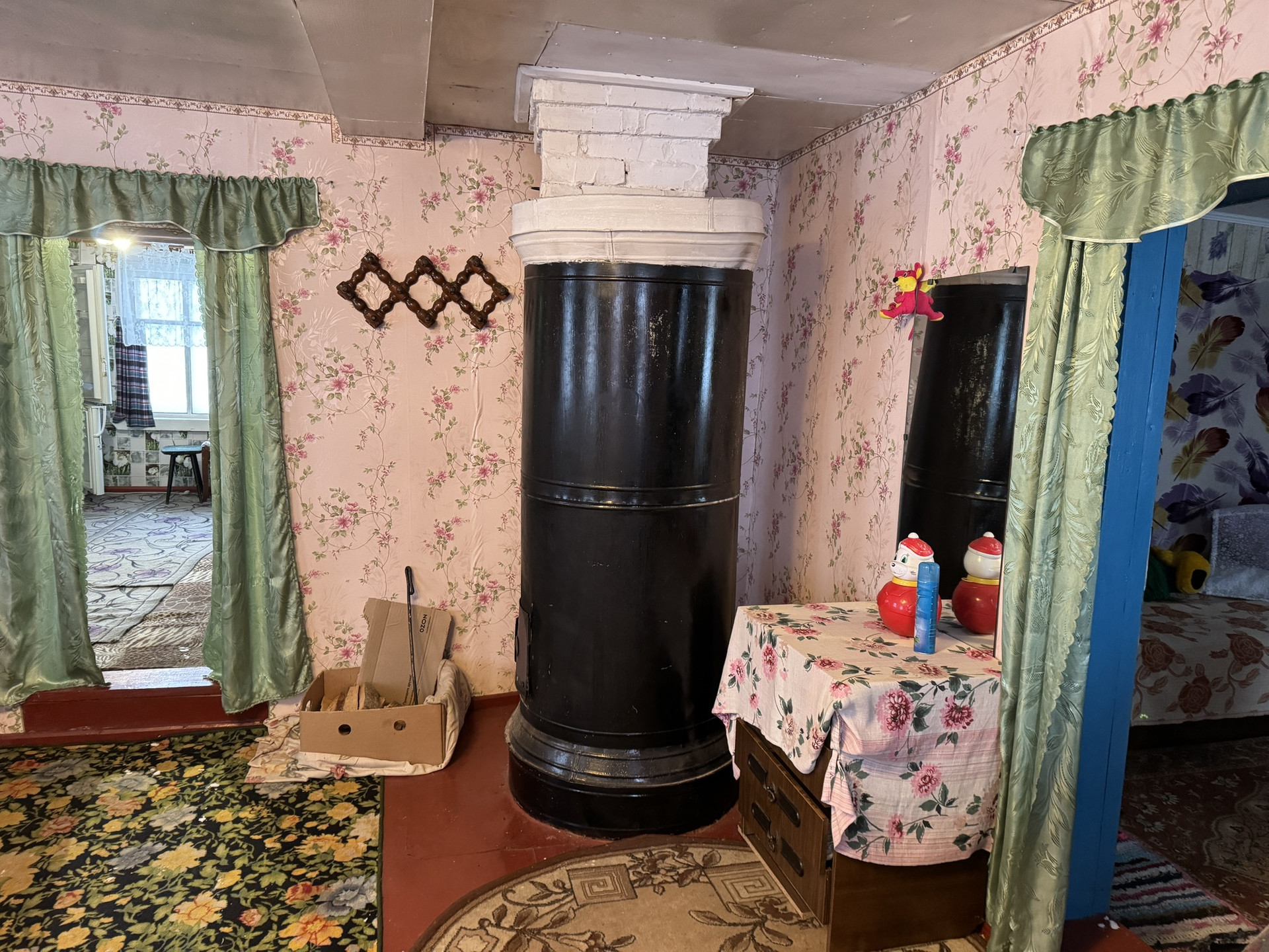 При желании можете посадить огород на участке. Есть деревенская печь с плитой и стояк. Есть русская баня.
