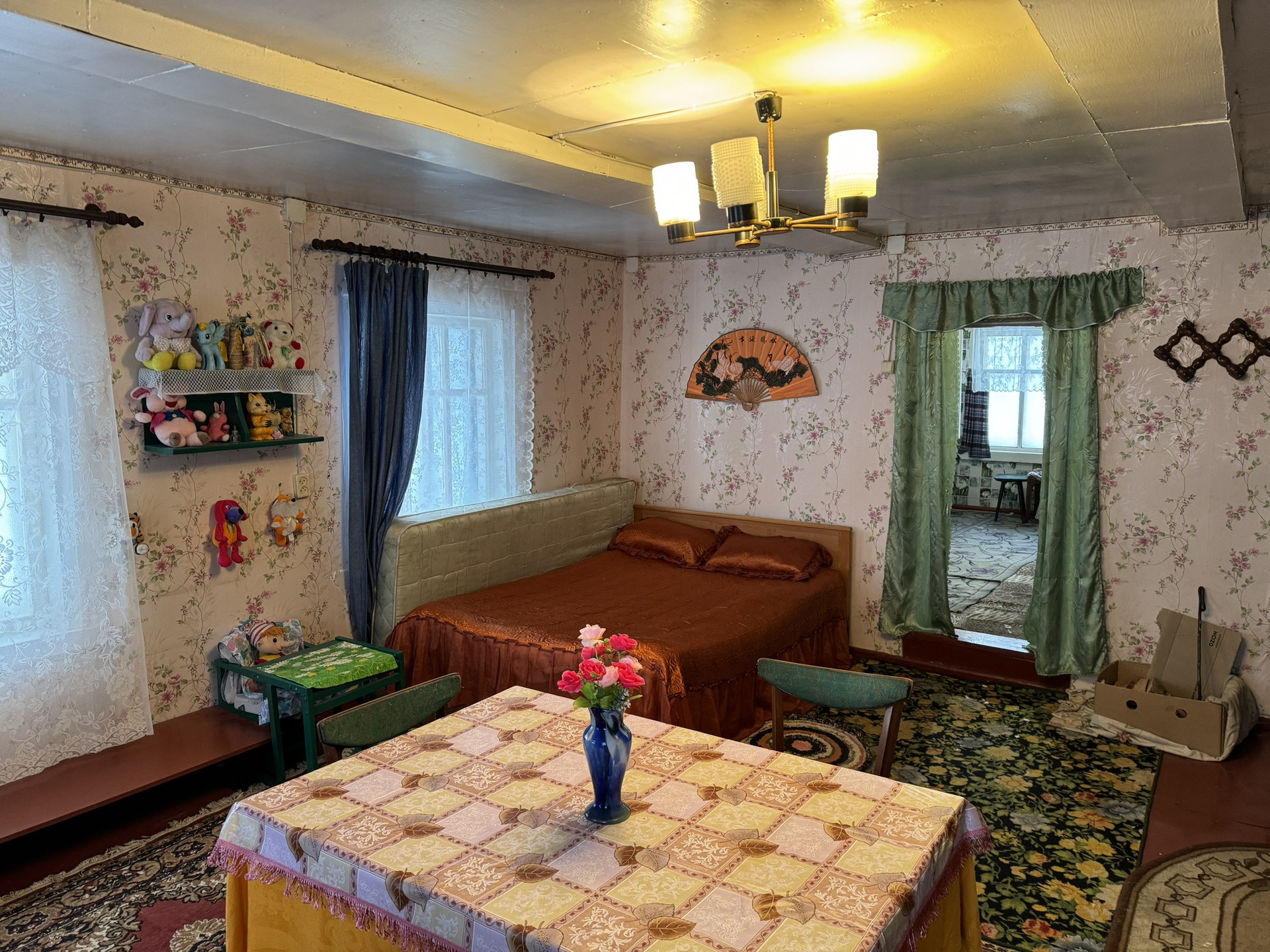 Продам деревенский дом в деревне Дирины Горки Псковской области, большой ухоженный участок с плодовыми деревьями (яблони, сливы, вишни, крыжовник, смородина). Три комнаты, кухня и просторный коридор. В доме есть все для проживания (посуда, мебель, холодильник, газовая плита), две кровати, три кресла и диван. Вода из колодца (рядом), чистый туалет на улице.