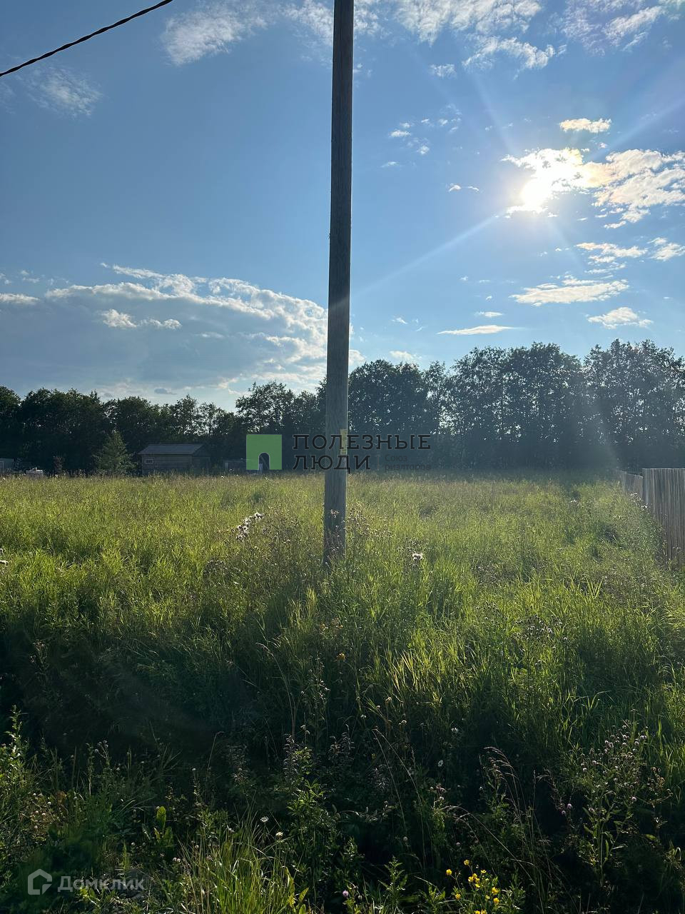 На участке стоит столб для подключения электричества.