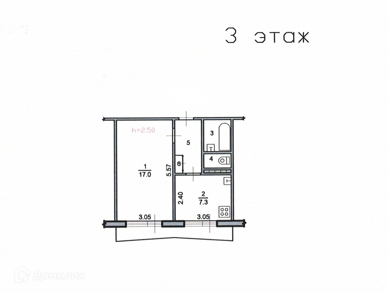 Высота потолков 2.5 м